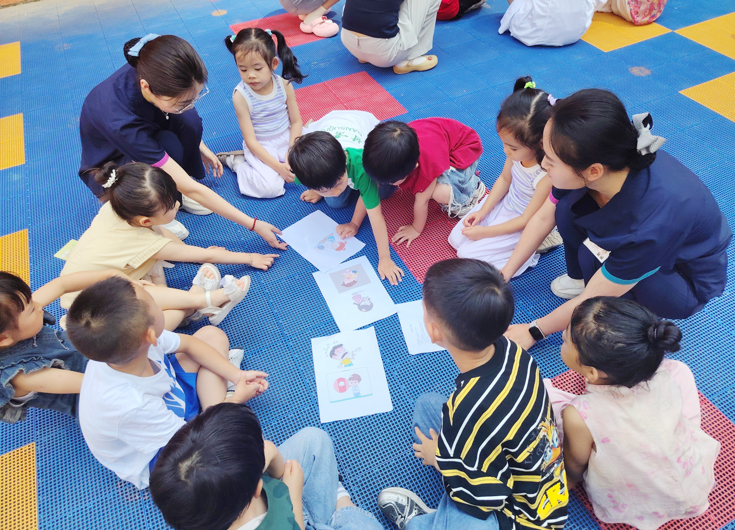 活动分两部分开展面向幼儿的课堂以“小小安全员:受伤不怕,我会保护自己!”为主题,通过小熊手偶故事、安全行为识别游戏、创伤应对角色扮演及口诀学习、与医护人员互动等形式,帮助孩子们了解安全知识和基本创伤处理方法活动还设置了“安全勋章授予仪式”,孩子们集体宣誓并获得了“安全小卫士”贴纸。此外,活动布置了亲子安全地图和安全儿歌录音等家庭延伸任务,将安全教育从幼儿园延伸到家庭。