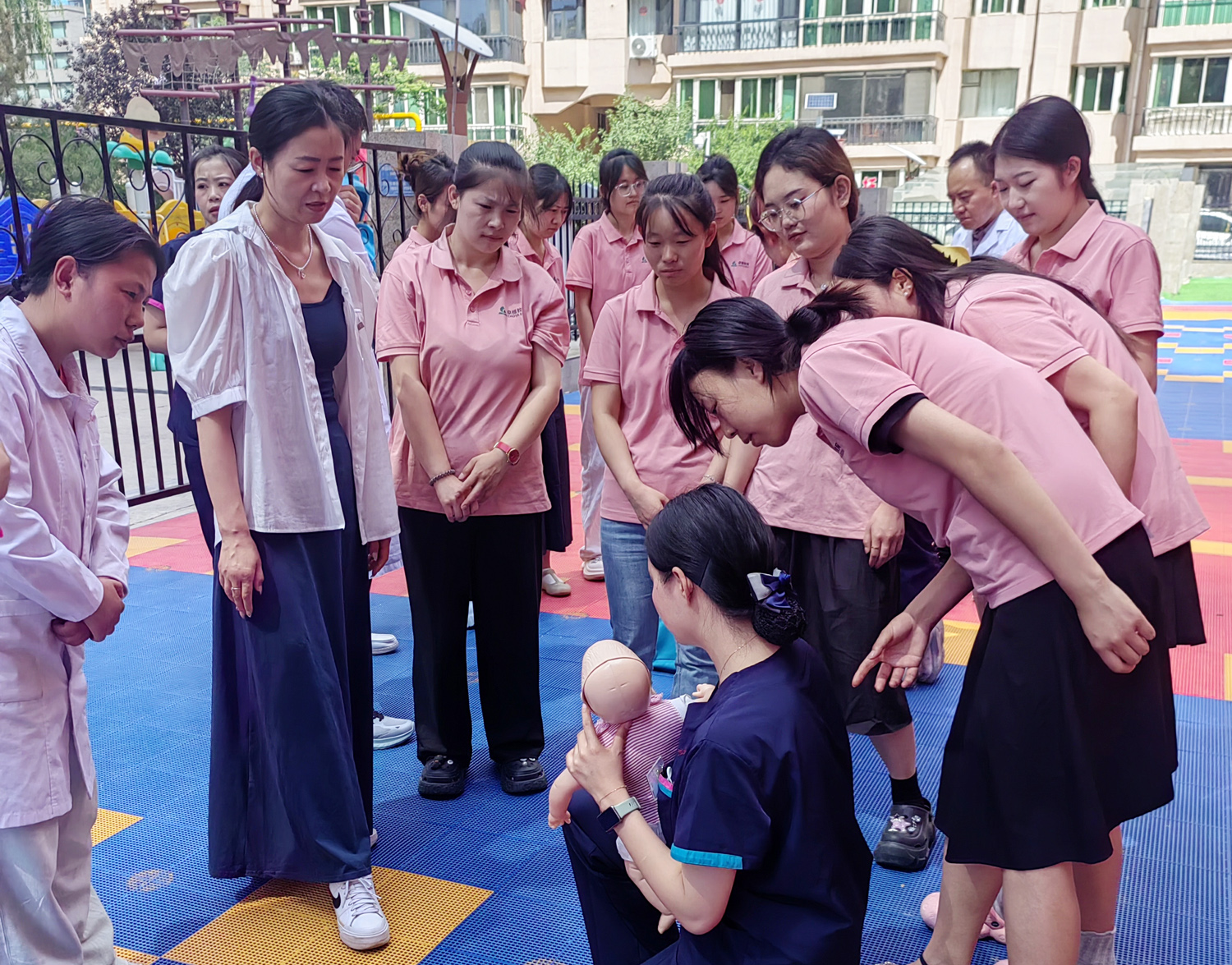 针对幼儿园教师的培训主题为“守护生命黄金时间,幼儿园教师急救技能实战培训”,通过急救法律与心理建设、幼儿生命体征识别、分龄急救技能实操、AED使用与园区应急流程以及高频错误内容的详细讲解让教师们了解“好人条款”,消除施救顾虑;了解幼儿心跳骤停、气道梗阻等危急场景的特异性表现,纠正了常见误区;现场指导教师实践操作不同年龄段幼儿的海姆立克急救法和心肺复苏流程确保教师们能够在实际情况中正确施救。