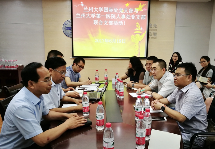 2017年 6月19日下午,为了深入推进“两学一做”常态化、改进工作作风,加强业务交流和工作沟通,院机关第二党总支第四党支部与兰州大学国际处党支部在兰州大学国际处会议室联合开展支部活动。学校国际处处长、党支部书记王育华,我院人事处处长、机关第二党总支第四党支部书记车世平,以及两个支部的全体党员参加活动。我院党委书记赵社文出席活动并讲话。
