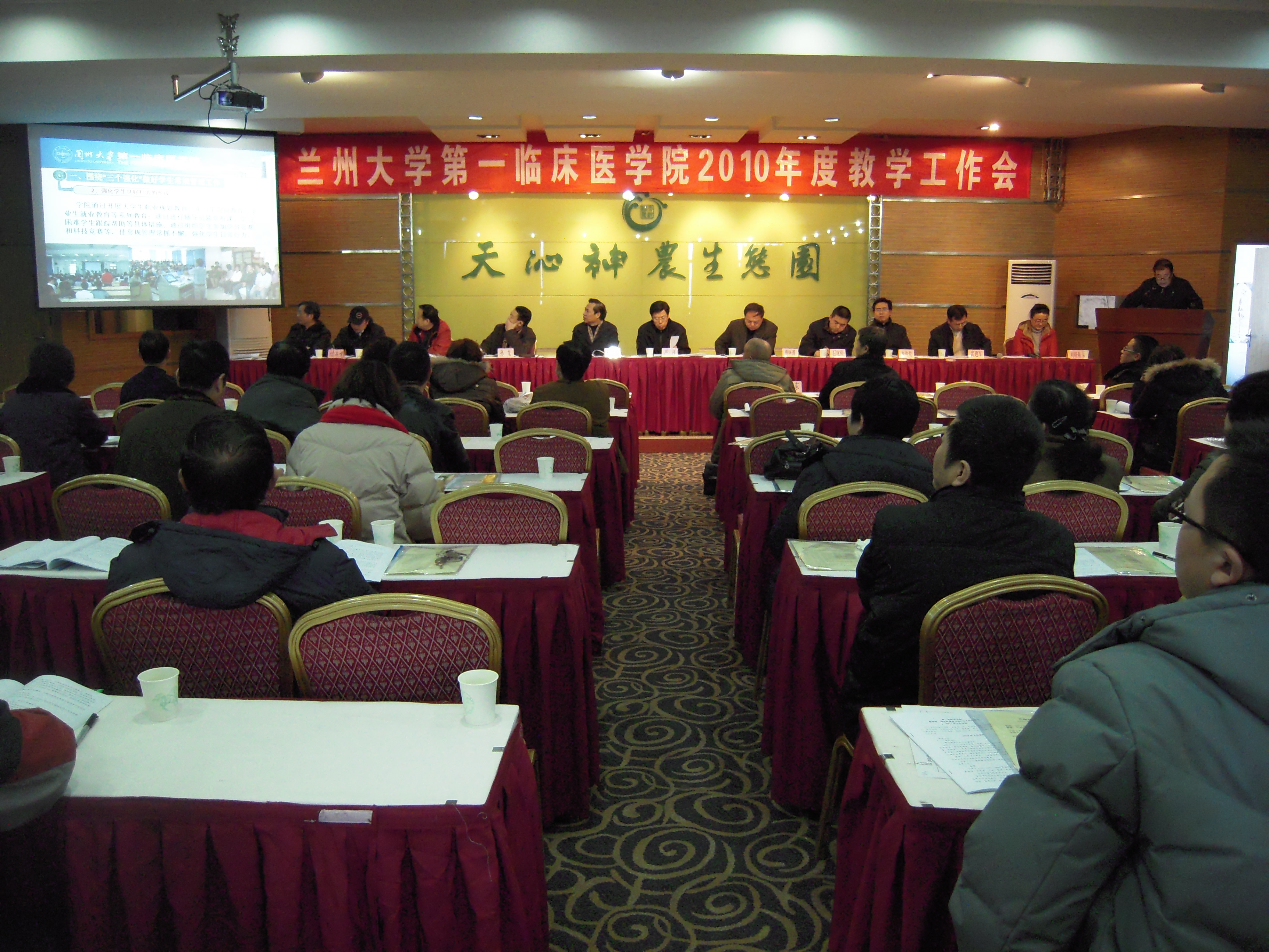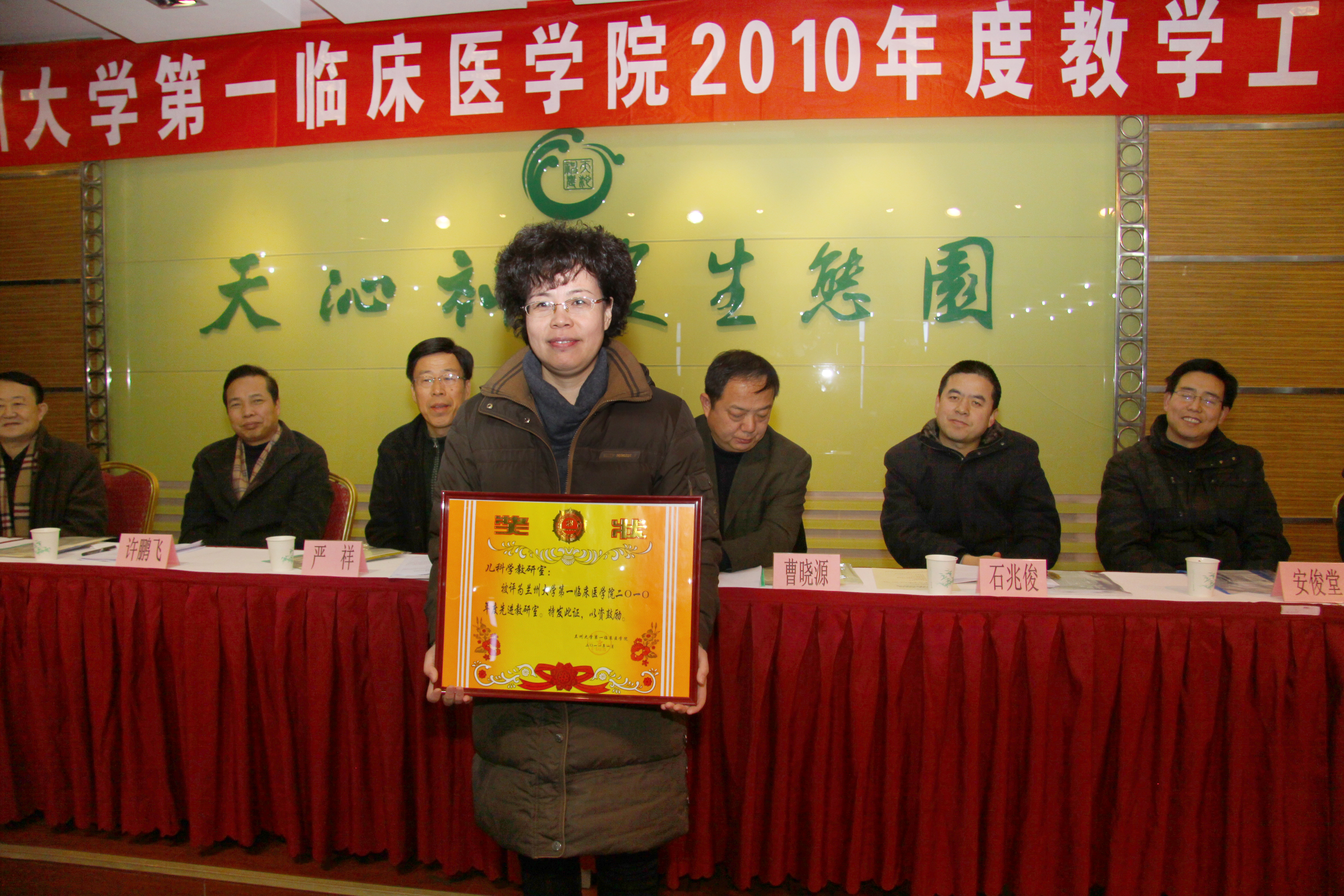 2011年1月9日,兰州大学第一临床医学院在天沁生态园举行2010年度教学工作会议。甘肃省卫生厅科技处曹晓元处长、李志强副处长,兰州大学部分机关处室及兄弟学院领导,我院院长严祥、党委书记郭琦、副院长刘晓菊,及相关部门负责人出席活动,会议由我院副院长刘晓菊主持。
