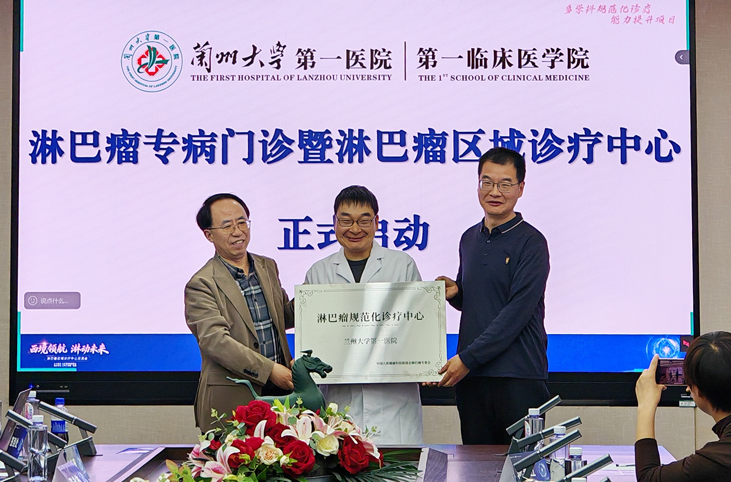 北京大学肿瘤医院刘卫平教授、时云飞教授、李囡教授、李永恒教授等国内权威淋巴瘤专科专家应邀到场进行授牌和指导,兰大一院副院长姬瑞、人事与师资处处长吕兴华出席会议。兰大一院血液科主任席亚明教授等专家团队参加会议。