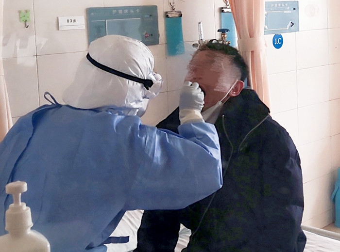医院门诊设有筛查室,医护人员在为发热患者量体温的同时,还将询问其流行病学史,也就是是否从武汉来甘,或是14天内与武汉相关人员有过接触,如有以上情况,将作为疑似对象,安排到急性肺部感染科(发热门诊)就诊。对于群聚性发病,即家庭或是几人同时发病,也将安排其到新型肺部感染科就诊。