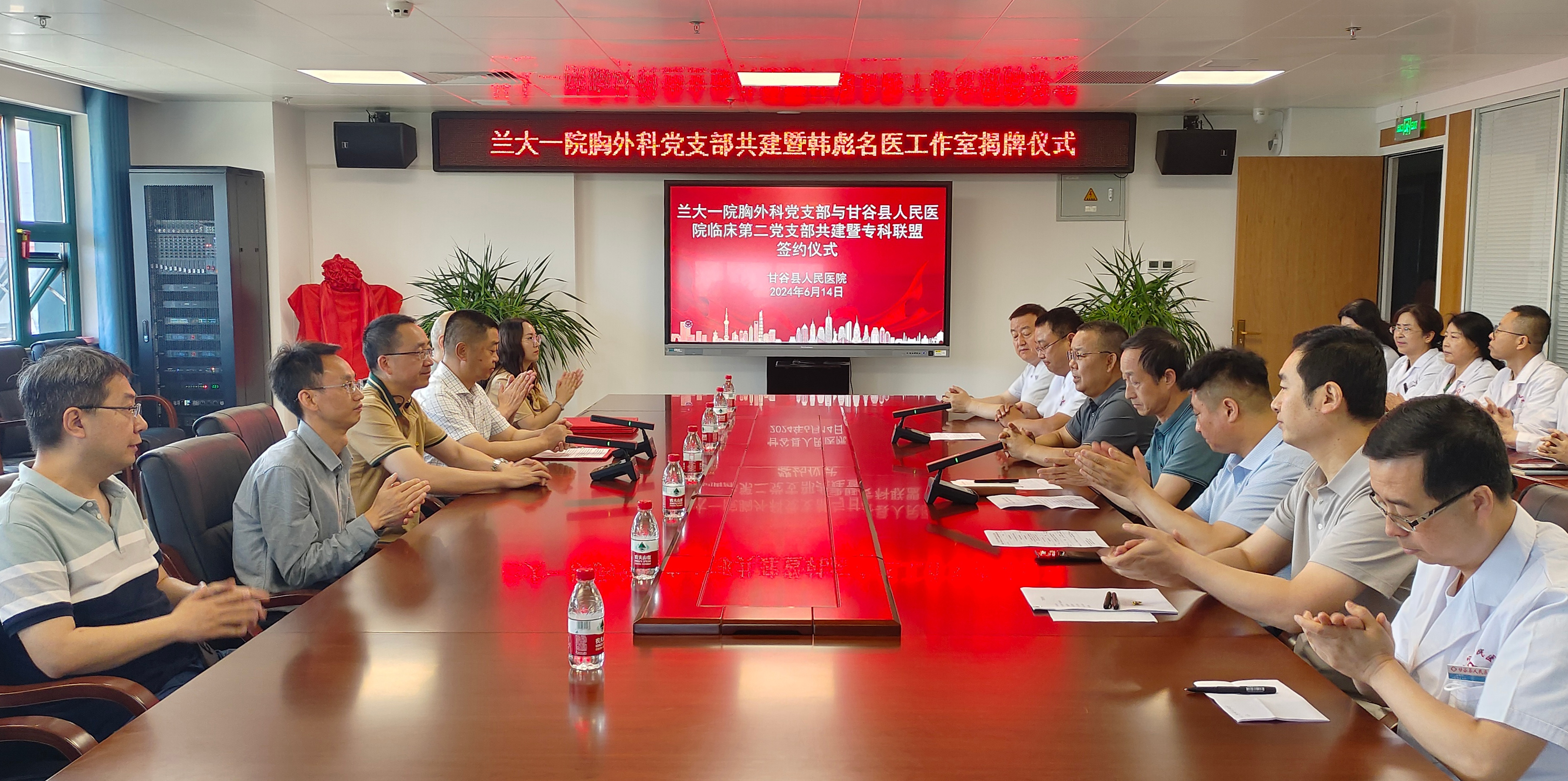 活动中,兰大一院胸外科党支部与甘谷县人民医院临床第二党支部举行了结对共建签约仪式,兰大一院胸外科党支部书记、科主任韩彪介绍了支部与科室基本情况,希望双方加强交流,学习互鉴,共同推动学科发展。甘谷县人民医院院长梁军表示,将学习兰大一院的先进管理理念和技术优势,强化专科建设,加快人才培养,提升服务品质,全面提升医院综合实力。