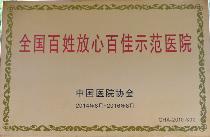 全国百姓放心示范医院创建活动是中国医院协会自2000年起在单位会员中开展的一项大型自律活动,其宗旨是“百姓放心,行业标杆”,并致力于医疗服务质量的提升与和谐医患关系的构建。2012年8月至2014年8月为百姓放心示范医院动态管理第四周期,启动第四周期动态管理后,我院上下高度重视,在医院管理、医疗质量、服务水平、医疗环境、医疗收费、医德医风等方面全面推进工作,落实各项医疗规范和管理制度,全面提升医院内涵,经过网络自评、网络直报数据、考核评价、社会公示等程序,我院再次顺利通过了中国医院协会的各项评审,并以优异的成绩跻身百强,荣获“全国百姓放心百佳示范医院”称号殊荣。