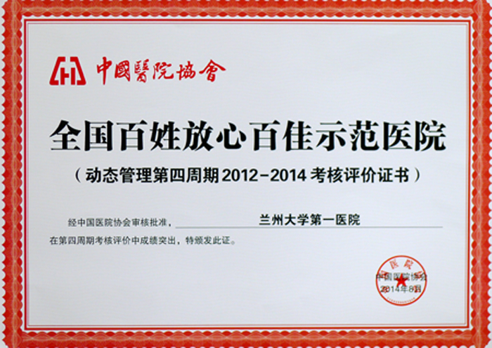 延伸阅读: 兰大一院荣膺全国百姓放心百佳示范医院称号(本站2012年8月21日发布)