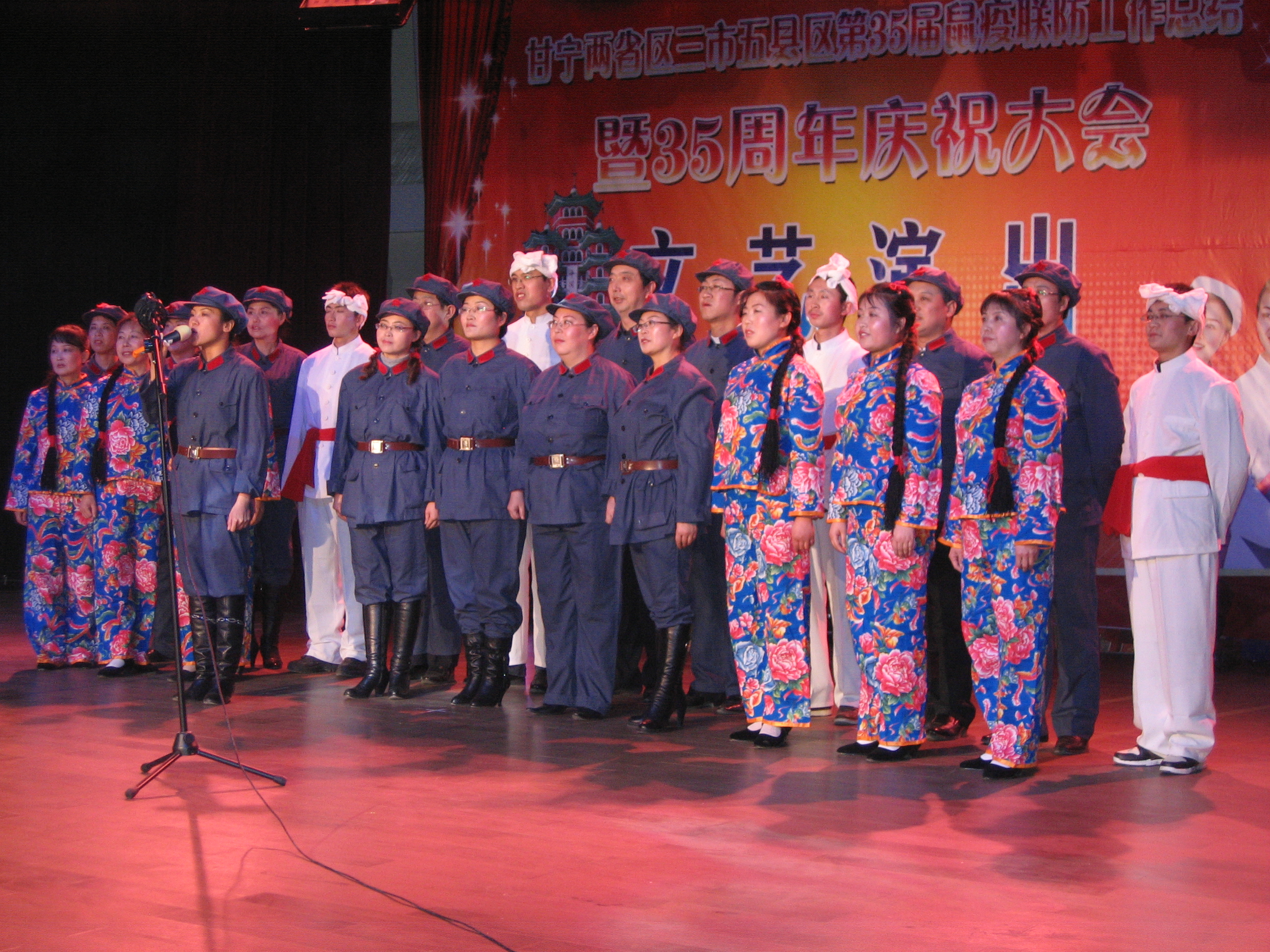 鼠疫联防是卫生厅和省疾控中心进行动物监测、鼠防知识宣传、群众义务灭鼠、监测点建设的重要组织,在甘宁两省(区)已联合开展工作三十余年,在消灭鼠疫疫情方面作出了重大贡献。本年度年终工作总结在会宁县举行,全体支农队员在完成支农工作的同时,利用业余时间进行排练,积极参加本次庆典活动。这也是“万名医师支农队员”首次参加卫生系统鼠疫联防方面的庆典活动!