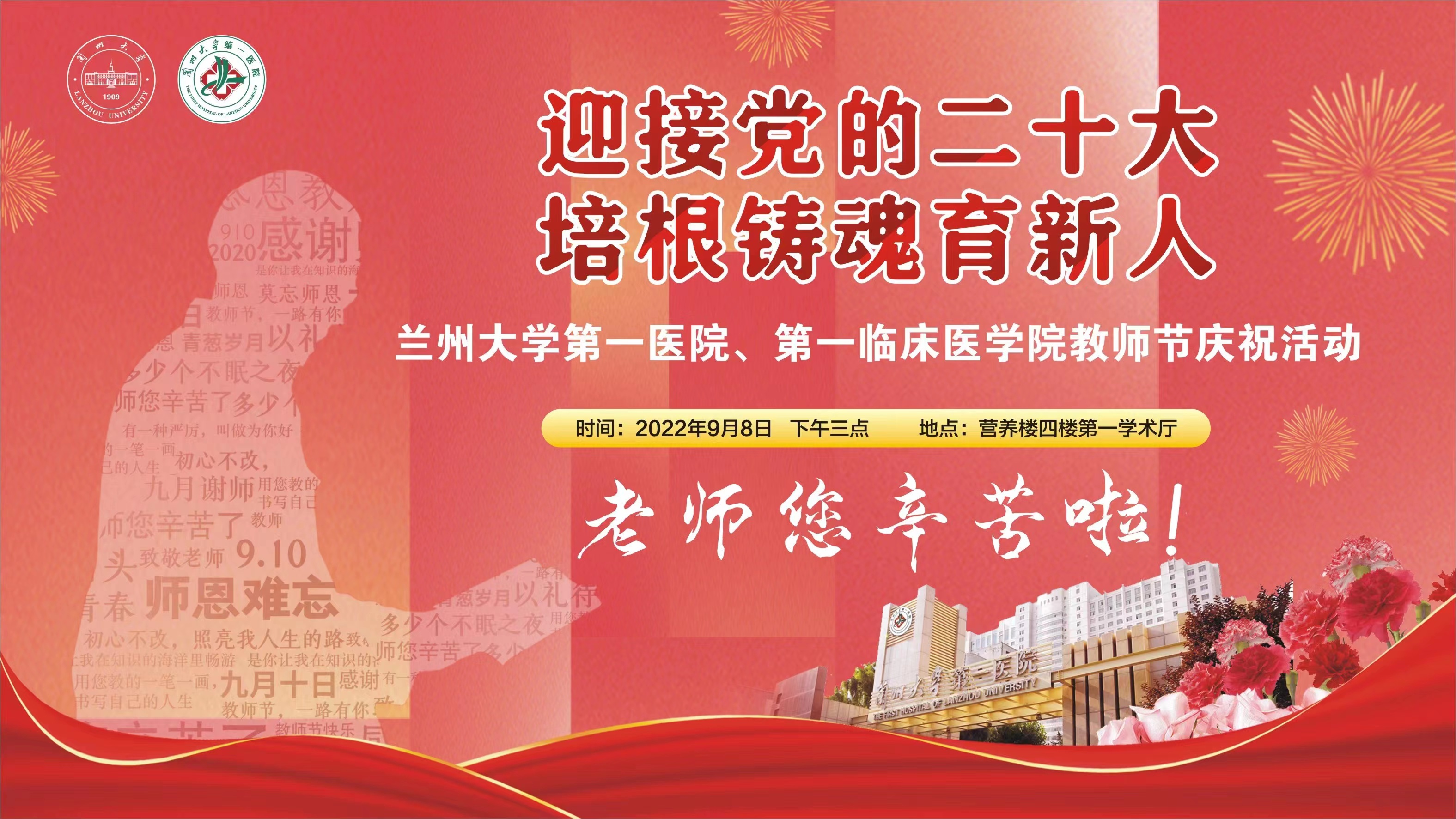 医者仁心,桃李芬芳。教师是我院事业发展的中坚和脊梁,是“双一流”建设的决定性要素。为营造尊师风尚,凝聚奋进力量,在第38个教师节到来之际,举办“ 迎接党的二十大,培根铸魂育新人”——兰州大学第一医院、第一临床医学院2022年教师节庆祝活动。