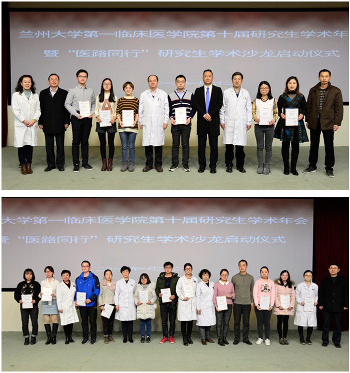 2018年1月23日下午15时,第一临床医学院在我院营养楼四楼第一学术厅成功举办第十届研究生学术年会暨“医路同行”研究生学术沙龙启动仪式。我院院长李汛教授,我院党委副书记、第一临床医学院党委书记兼执行院长杨永秀教授,校循证医学中心主任杨克虎教授,我院副院长刘健教授、副院长武新安教授,本届研究生学术年会论文评审专家、部分研究生导师代表、相关职能处室负责人、研究生处工作人员及全体研究生参加了此次会议。