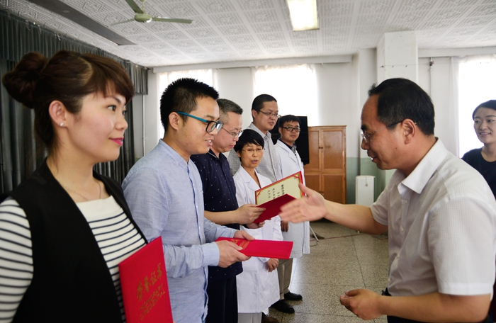 会议对2016年度新闻与网络工作先进集体和先进个人进行表彰。赵社文为获奖集体代表和个人颁发奖励,亲切鼓励他们,为医院的新闻与网络工作继续努力。
