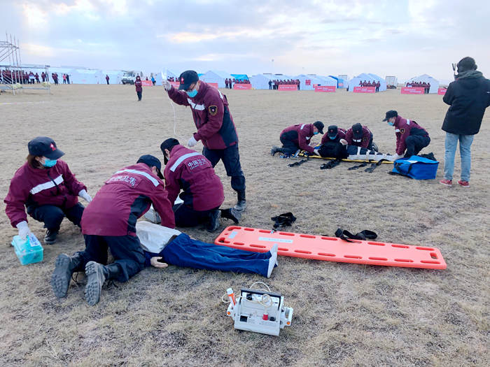 兰州大学第一医院由各相关科室选派27名医务人员组成医疗救援队。队员们克服各种困难,经历为期两个月的紧张训练,成为了一支拉得出、练得紧、打得赢的队伍,充分体现了“危险时刻救死扶伤,实战演练历练精兵”的应急救援精神。
