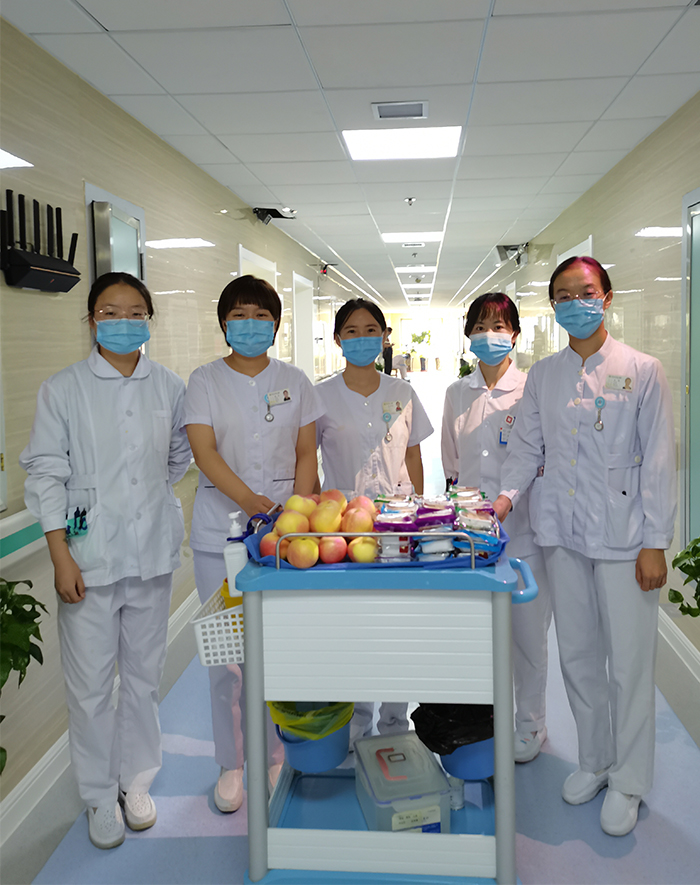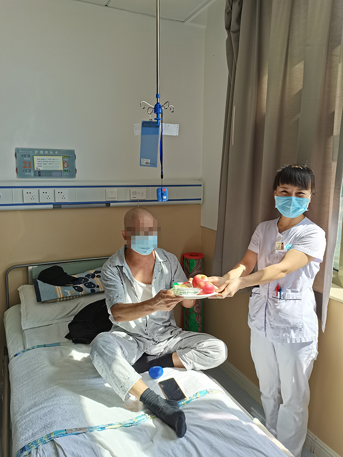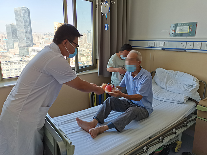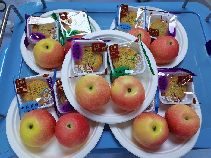 在科室主任,科护士长的带领下,兰大一院胸外科全体医护人员给患者及家属送上了中秋月饼和苹果。