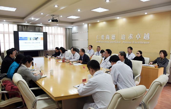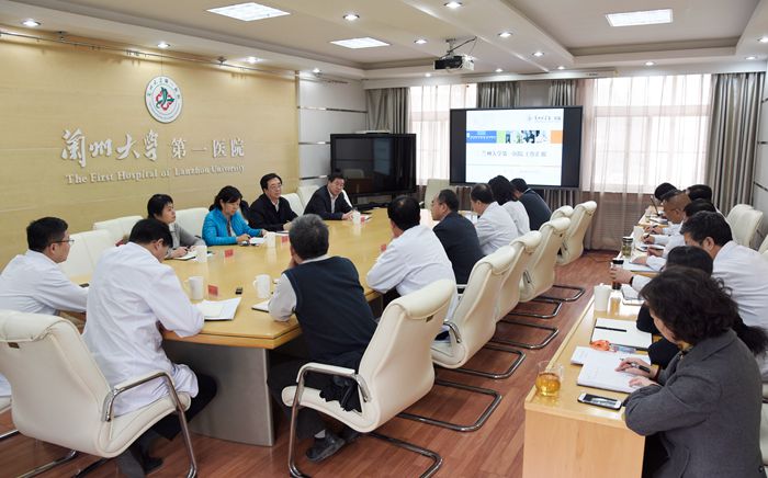 2019年1月7日下午,兰州大学党委副书记、医工委书记郭琦,副校长、医学院院长王锐来我院调研指导工作。医工委副书记、医学院副院长于安丽,医学院综合办公室副主任陈志雄陪同。我院党委书记赵社文、院长李汛、院领导班子全体成员及党委办公室、院长办公室等相关部门同志参加。