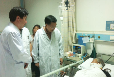 刘厅长认真听取了值班医师对患者病情和救治情况的汇报,对我院的治疗方案和救治措施给予肯定,高度评价我院中西医结合救治方法,对我院及时进行灾后心理干预表示肯定。他要求,全体医护人员一定要全力以赴抢救病人,中西医并重,中医参与抢救,综合运用中药、针灸、食疗等多种诊疗方法救治伤员。随行的名中医为伤员问诊并开了中药。