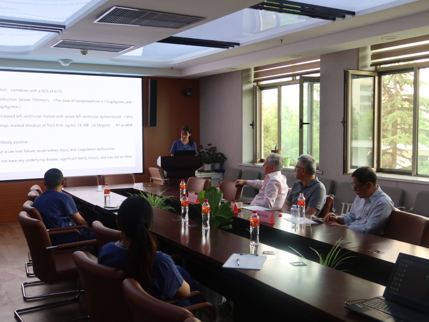 加拿大心脏专家先后参观了CCU病区、心导管室、心超室、心电图室、起搏器程控室等,并在心内CCU会议室进行了学术交流。CCU病区卢安东副主任医师以“CCU的现况、发展与未来”为题作了专题分享,科室骨干医生分别以“Acute necrotizing encephalopathy with fulminant myocarditis”“Mitral regurgitation”为题作了病例汇报,双方围绕ECMO、体外生命支持、新技术开展等话题进行了深入的探讨。