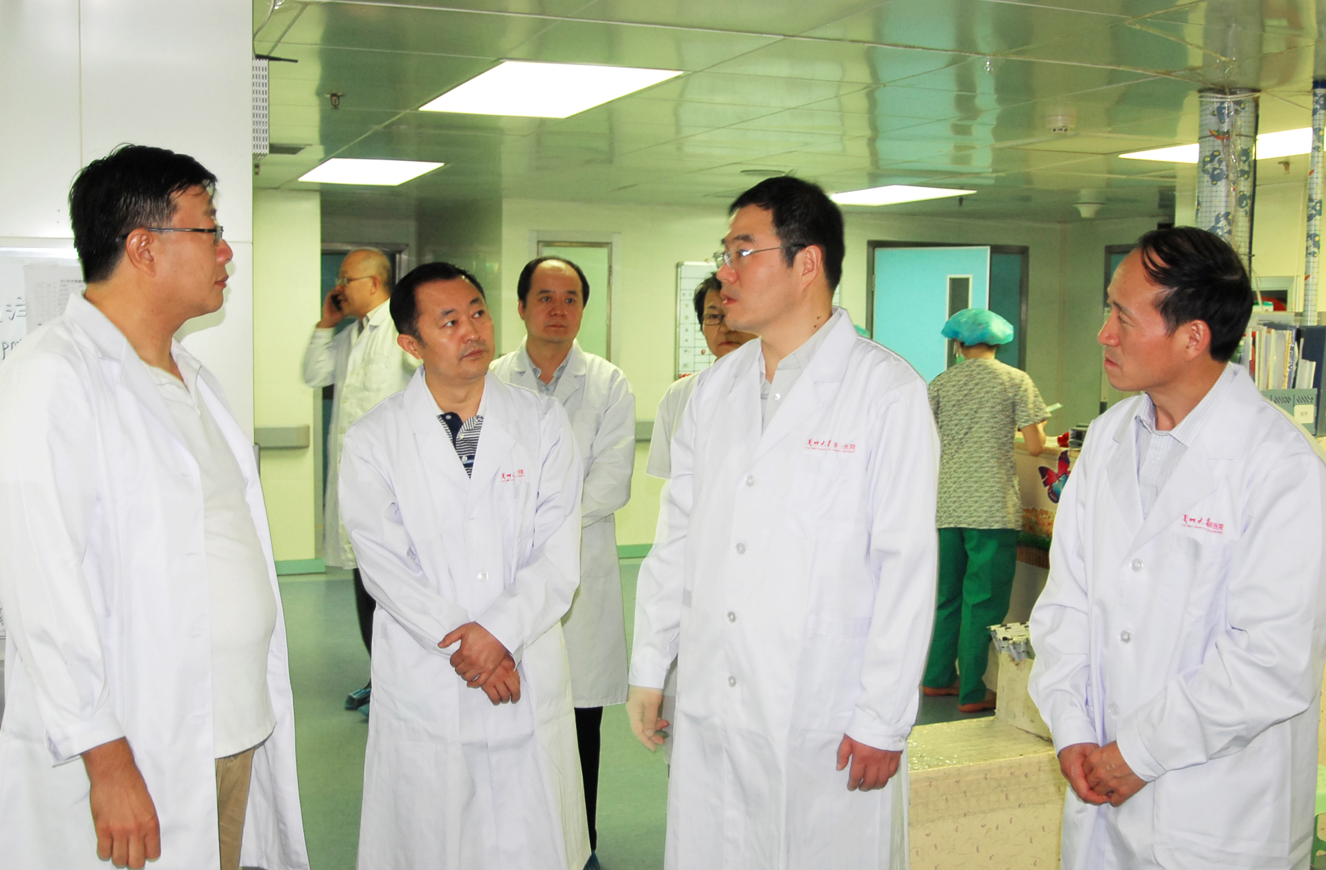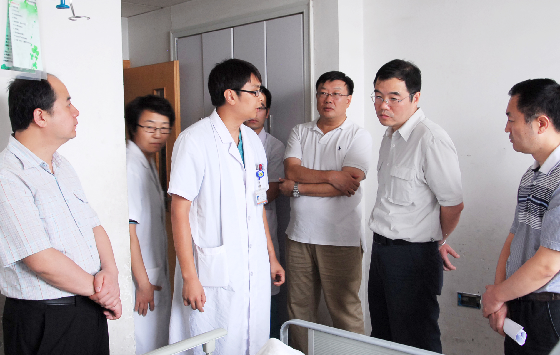 7月27日下午17:40, 国家卫生和计划生育委员会应急办主任张宗久、甘肃省卫生厅副厅长金中杰等一行来到我院,亲切看望了转运来兰治疗收住我院的15名定西地震灾区伤员,指导抗震救灾医疗救治工作,并与我院医务人员亲切交谈。副院长李汛、郭顺林、张钲陪同前往。