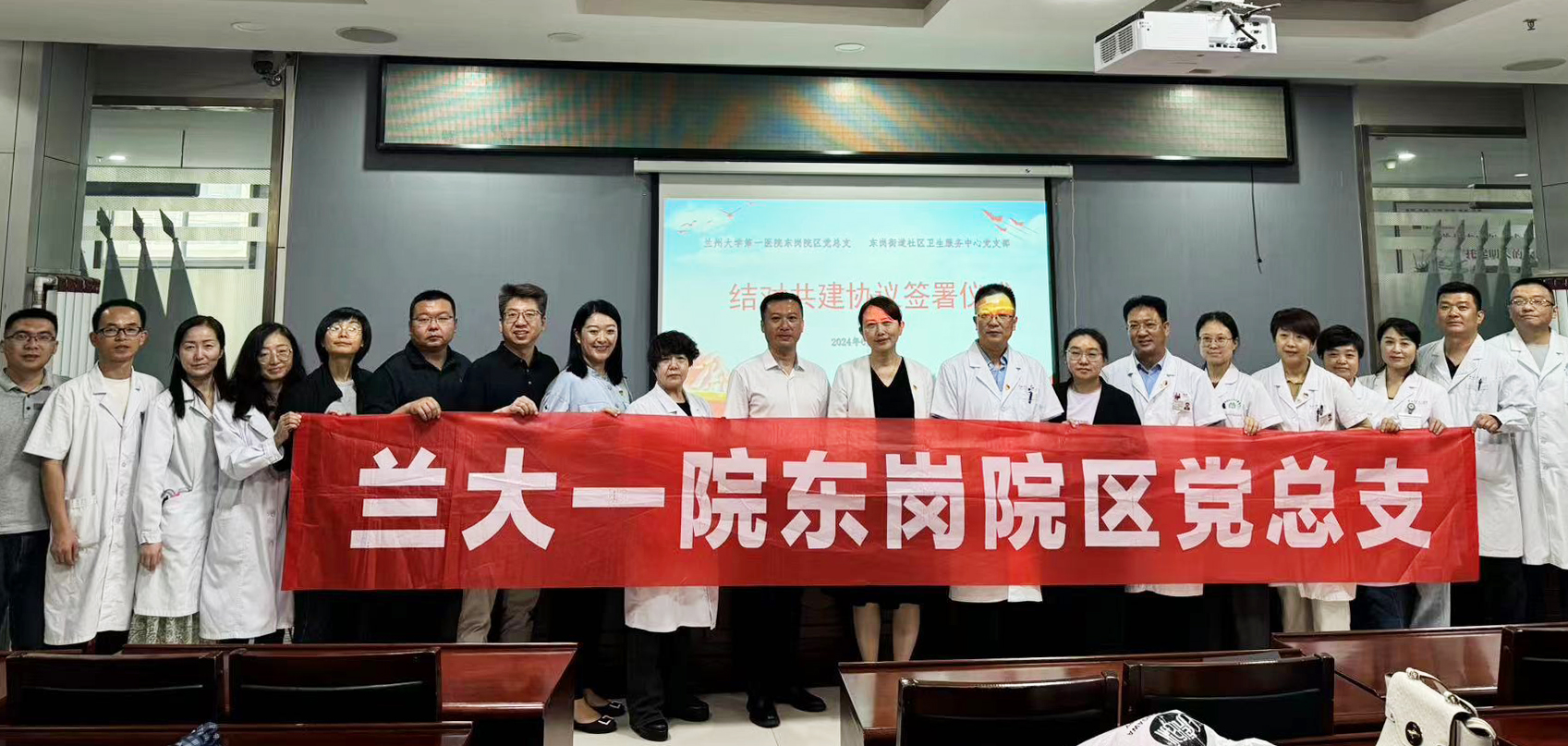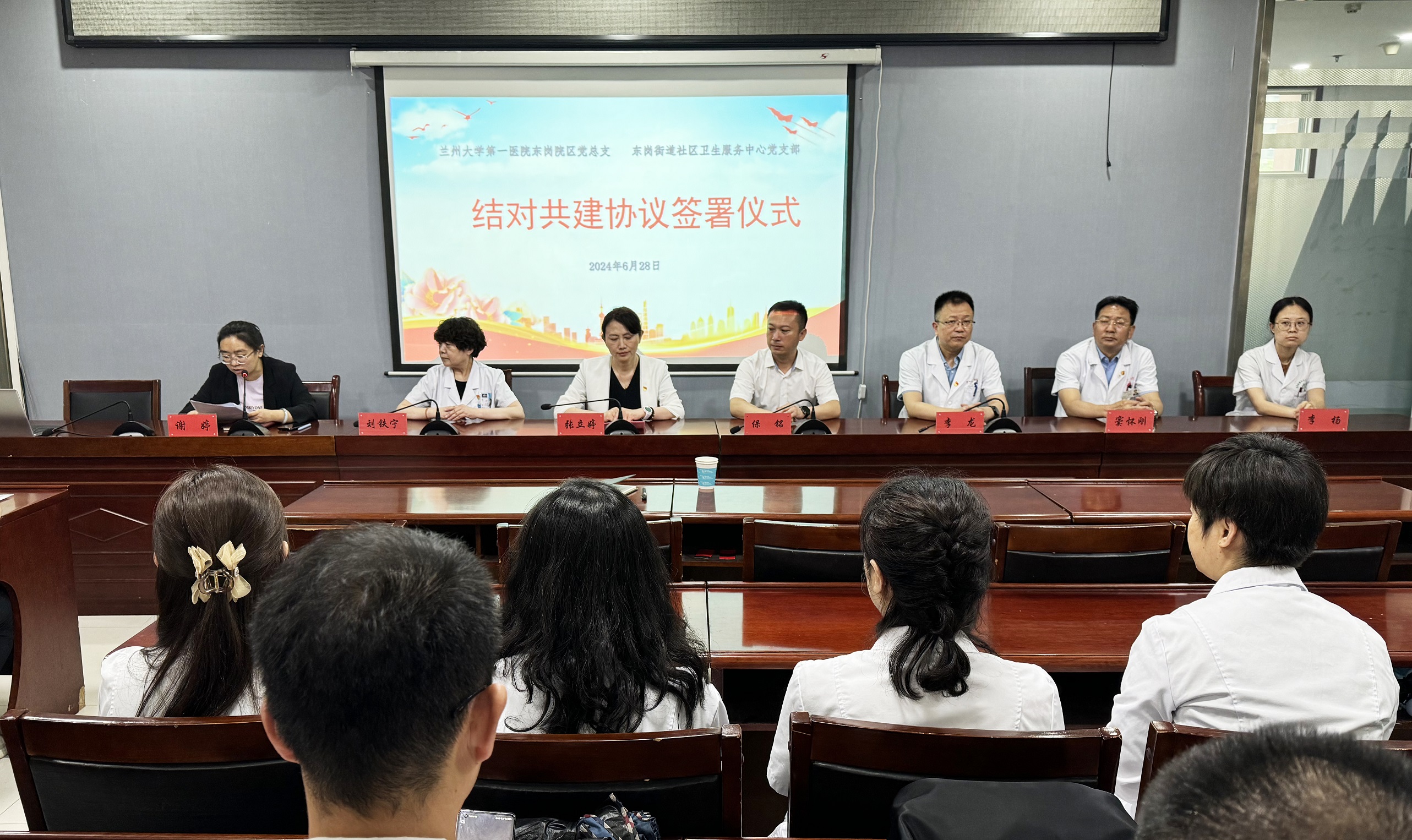 6月28日上午,兰大一院东岗院区党总支与东岗街道社区卫生服务中心党支部举行党建结对共建活动,兰州市城关区卫健局副局长保铭,东岗街道党工委副书记谢婷,东岗街道社区卫生服务中心主任刘铁宁,兰大一院副院长、东岗院区党总支书记、院长张立婷,东岗院区副院长李龙、窦怀刚等出席签约仪式。