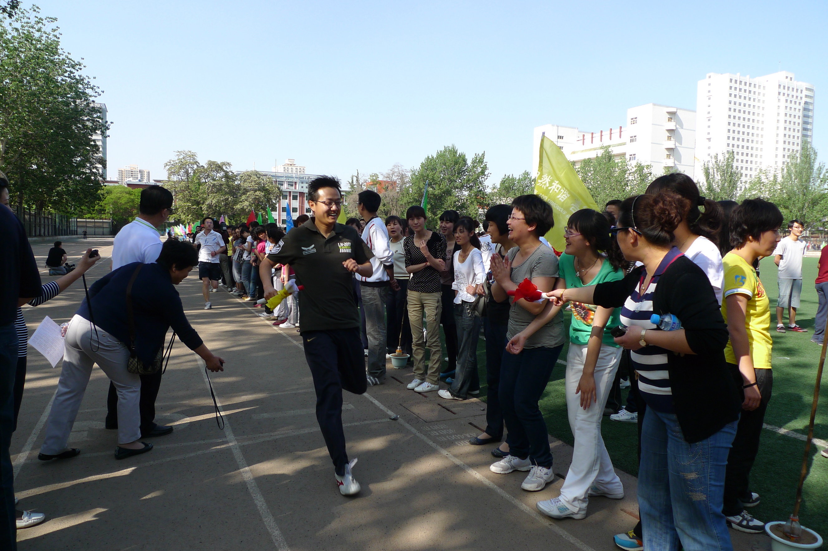 2011年5月10日下午,为庆祝“5.12”国际护士节,我院护理部在医学院体育场成功举办了“在灿烂的阳光下——国际护士节长跑接力赛”。我院副院长余勤、刘晓菊, 医务护理部部长王建民、主任张彩云,及相关科室负责人出席活动,来自全院36个科室代表队的288名选手参加了比赛。