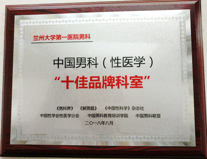 2018年8月25日,在历史悠久的塞上古城-银川隆重举行了“第十三届中国男科论坛暨第三届中国男科主任高峰会”,来自国内外百余位男科专家出席了本次大会,由中国性学会、中国男科教育培训学院、中国男科联盟、共同评选的中国男科“十佳品牌科室”揭晓。我院男科成为西北五省唯一获此殊荣的科室。