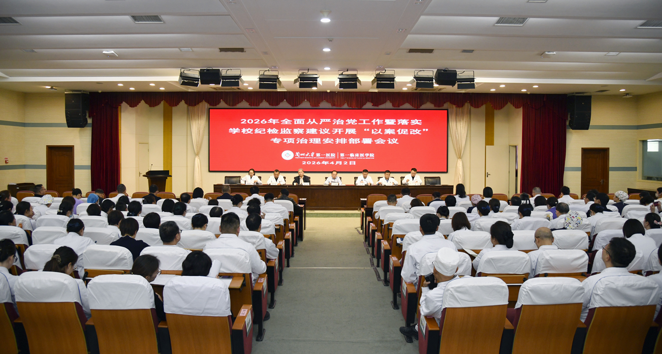 4月2日下午,兰州大学第一医院(第一临床医学院)2026年全面从严治党工作暨落实学校纪检监察建议开展“以案促改”专项治理安排部署会议在营养楼第一学术厅召开。学校党委常委、医院党委书记王定峰主持会议并讲话。