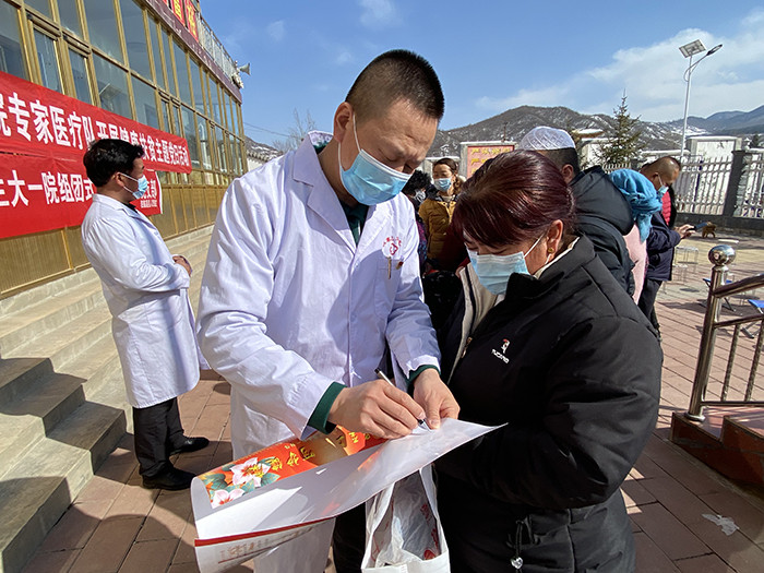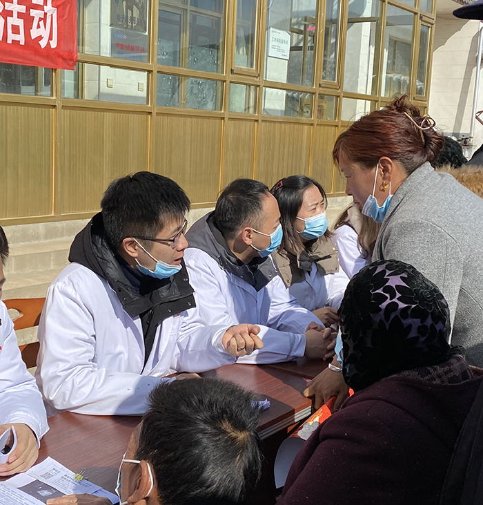 2月23日,兰大一院医疗队一行9人来到甘肃省法院对口帮扶的尹集镇新发村开展“医法联合助力、送医送法下乡”支部共建主题活动。肾病、消化、普外、骨科、妇产、眼科、泌尿、心内等多个专业的骨干医生在新发村党群服务中心为200余名百姓进行健康查体,宣传预防保健知识,发放医患联系手册,义诊活动现场,闻讯赶来的患者络绎不绝。