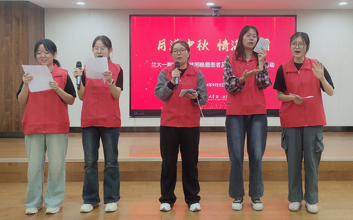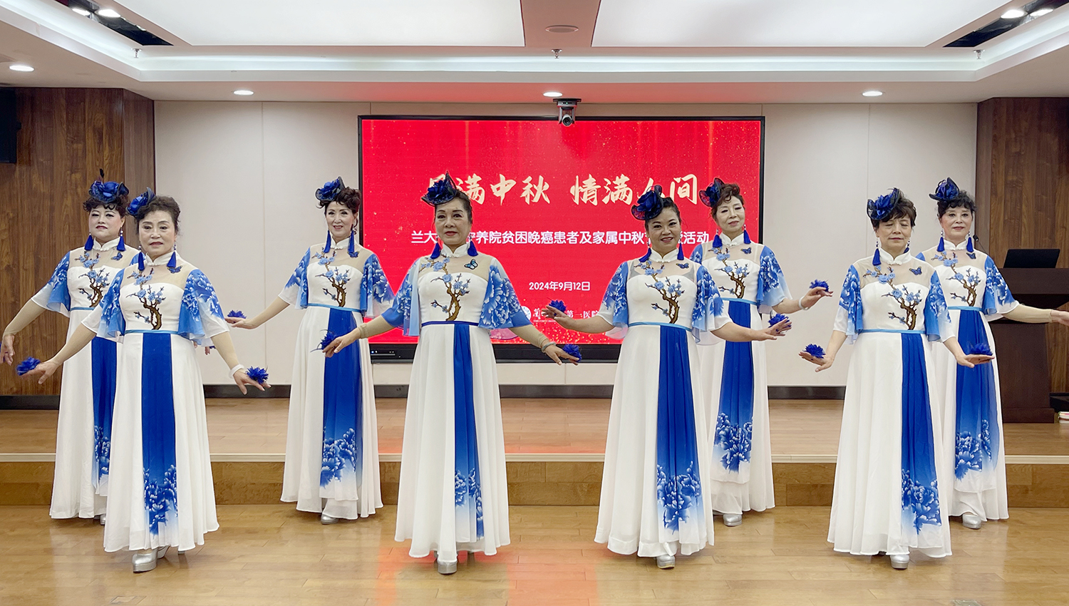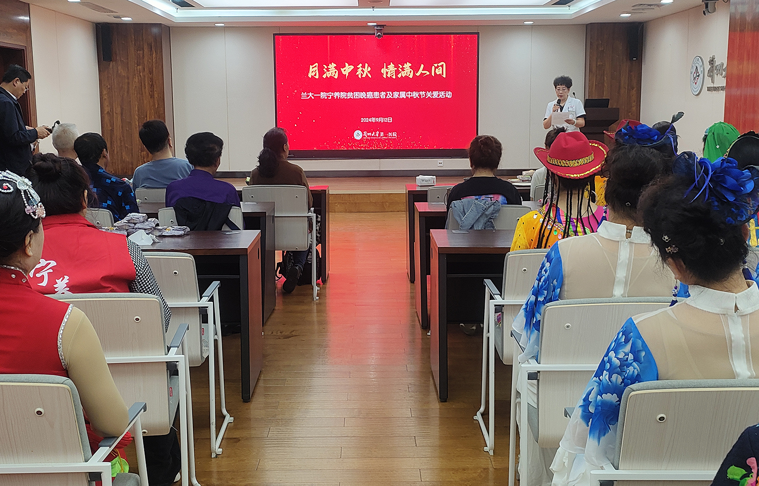 9月12日上午,在中秋佳节来临之际,兰大一院宁养院在门急诊综合楼五楼举办了“月满中秋 情满人间”主题的中秋节关爱活动。宁养院主任周荣向参加活动的患者及家属送上了节日的祝福。