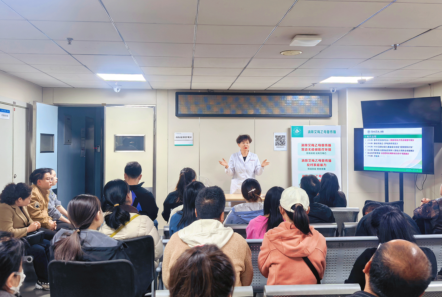 在产科病区,针对孕晚期女性及其家属,产科专家与资深专科护士带领参观产房及病区环境,并开展“孕晚期保健及分娩配合”专题科普讲座,帮助准妈妈们更好地迎接新生命的到来。