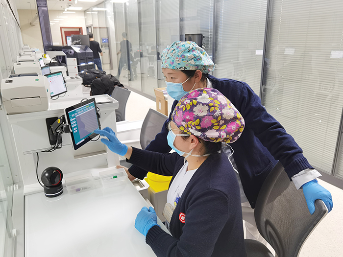 2日,门诊部五楼大外科区域以及二楼采血线正式投入使用。