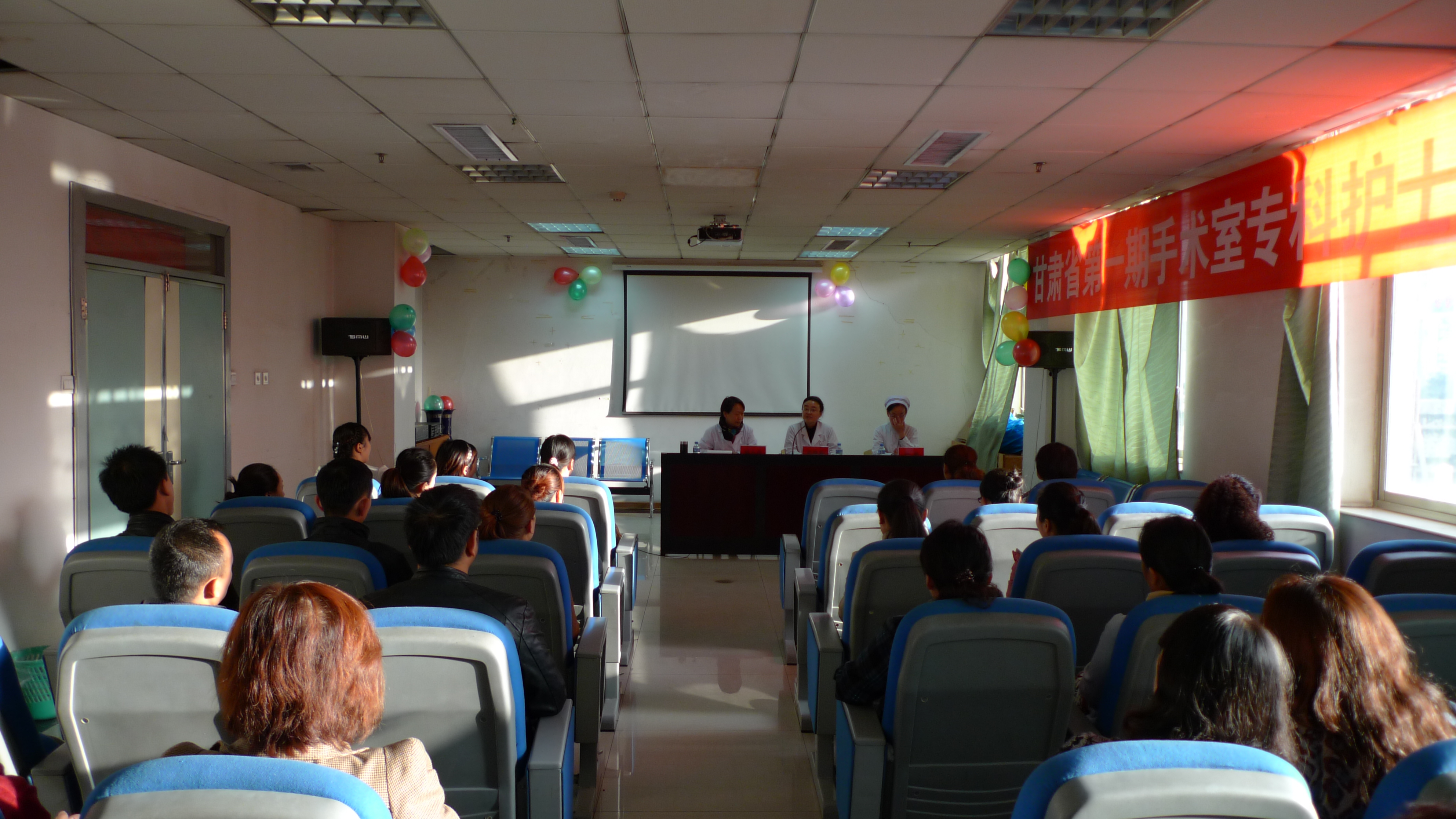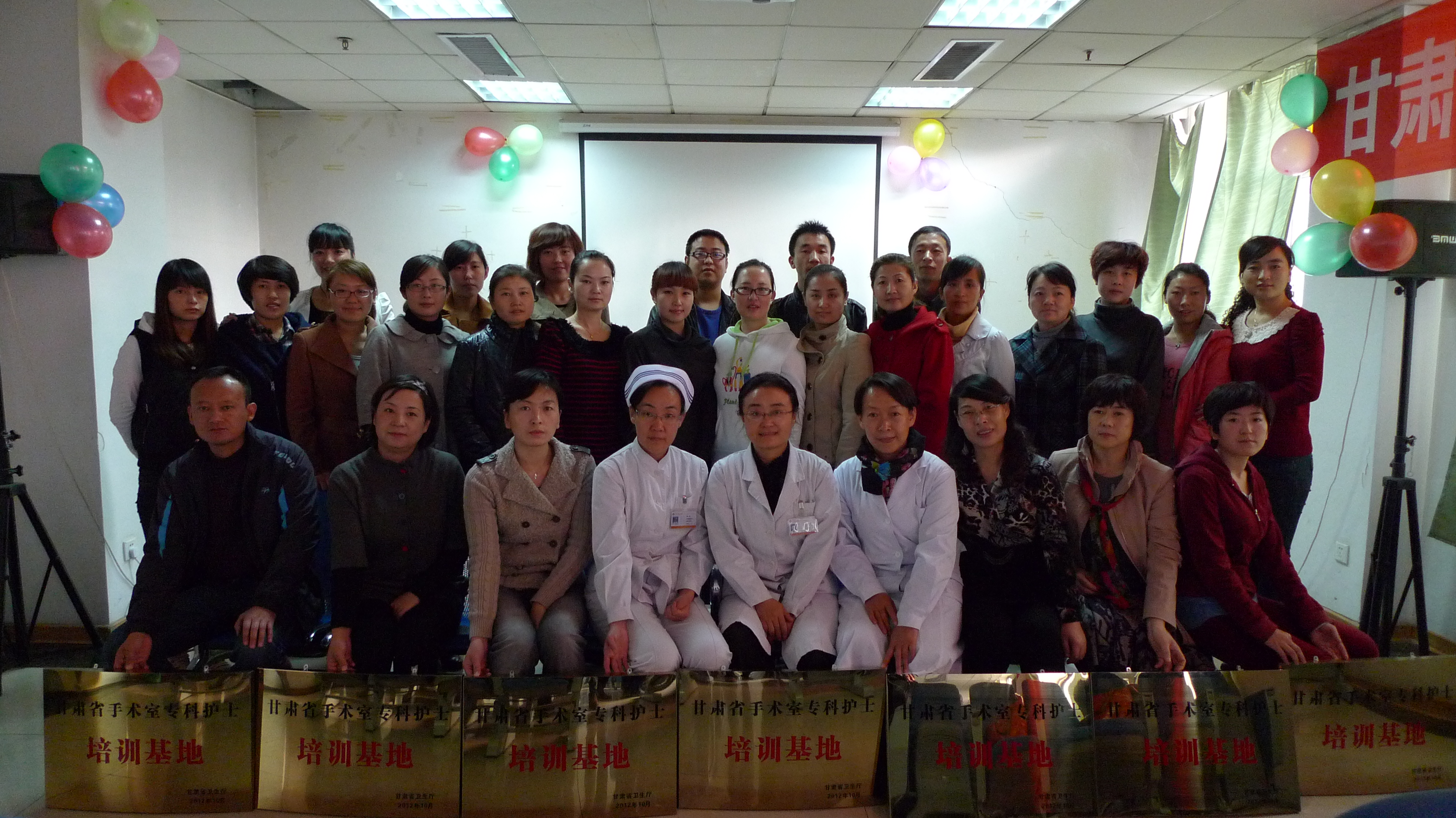 2012年10月29日,受省卫生厅委托,由甘肃省手术室护理质量控制中心举办的“甘肃省第一期手术室专科护士培训学习班暨手术室专科护士培训基地授牌仪式”隆重召开,来自全省各地、市医疗机构的手术室专业30名手术室护理骨干参加了培训。