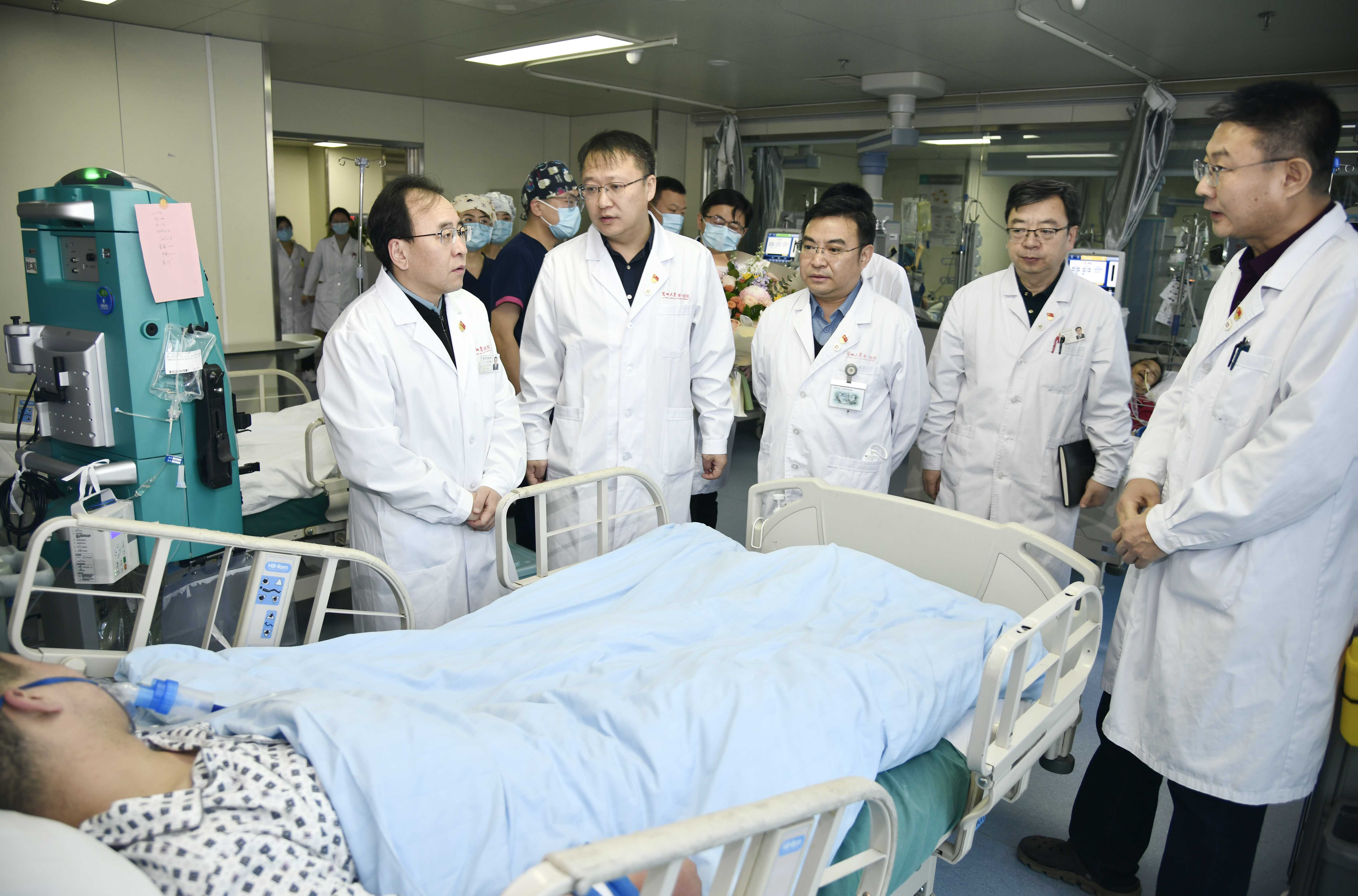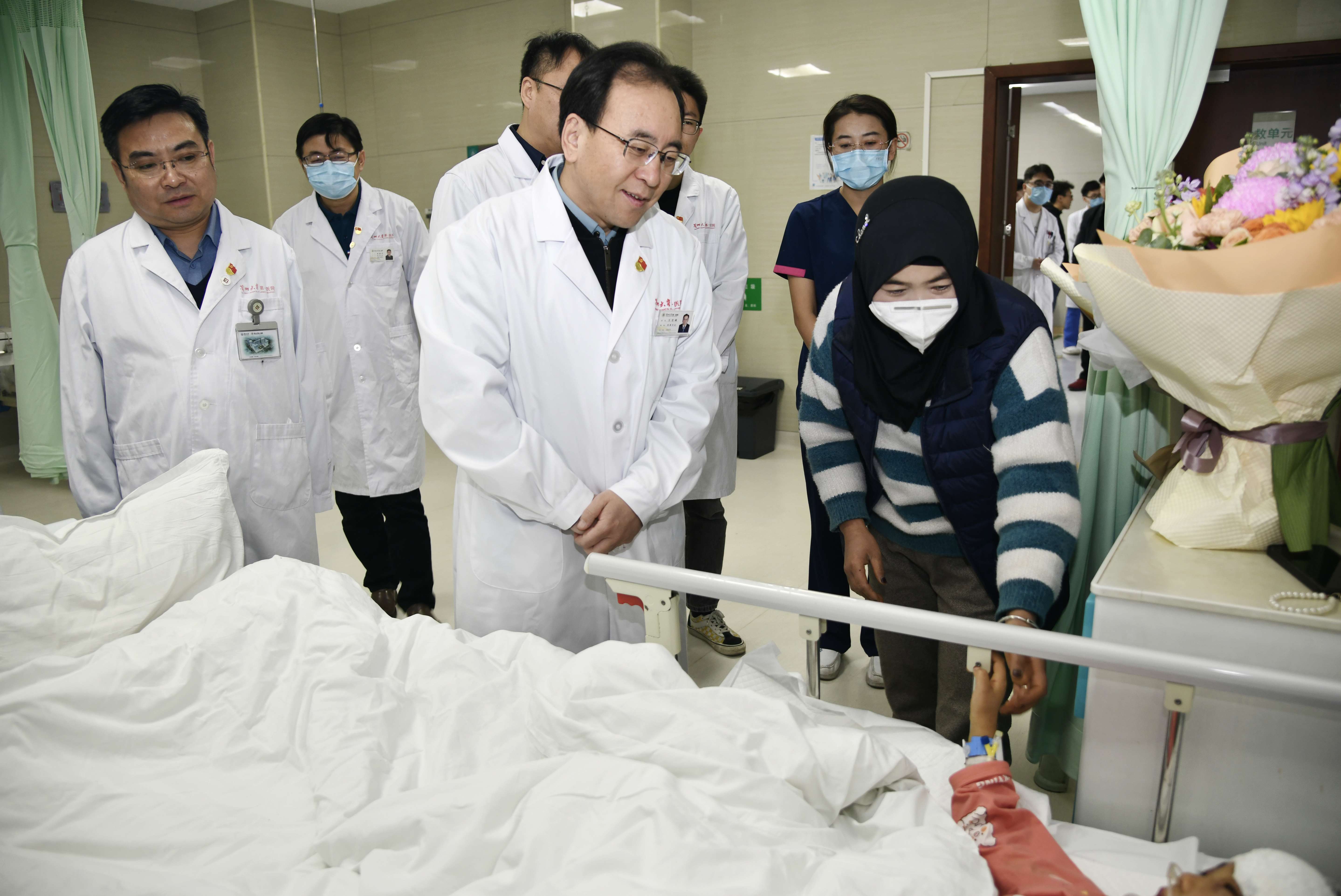 12月21日上午,学校党委常委、医院党委书记王定峰,党委副书记、工会主席车世平,副院长姬瑞一行前往重症医学科、创伤外科看望由积石山地震灾区转至我院受伤群众,对患者及其家属表示了深切慰问。