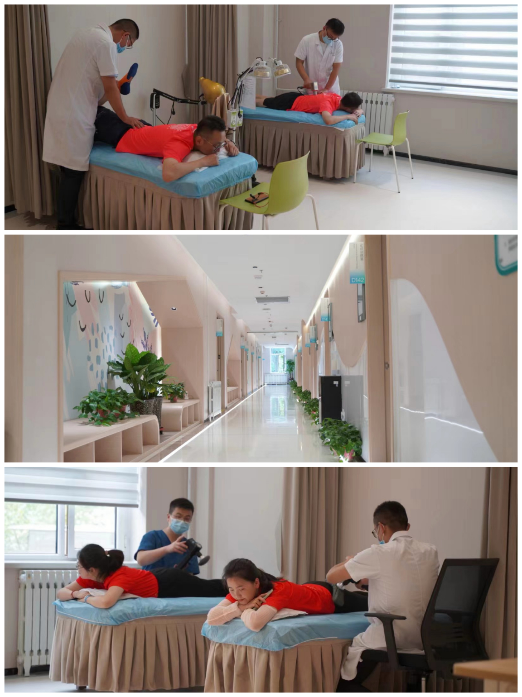 4.体态运动康复:开展含胸驼背高低肩、脊柱侧弯、骨盆前后倾、功能性长短腿的康复评估及治疗;核心训练、减脂塑形训练、专业等速力量训练、康复攀岩;