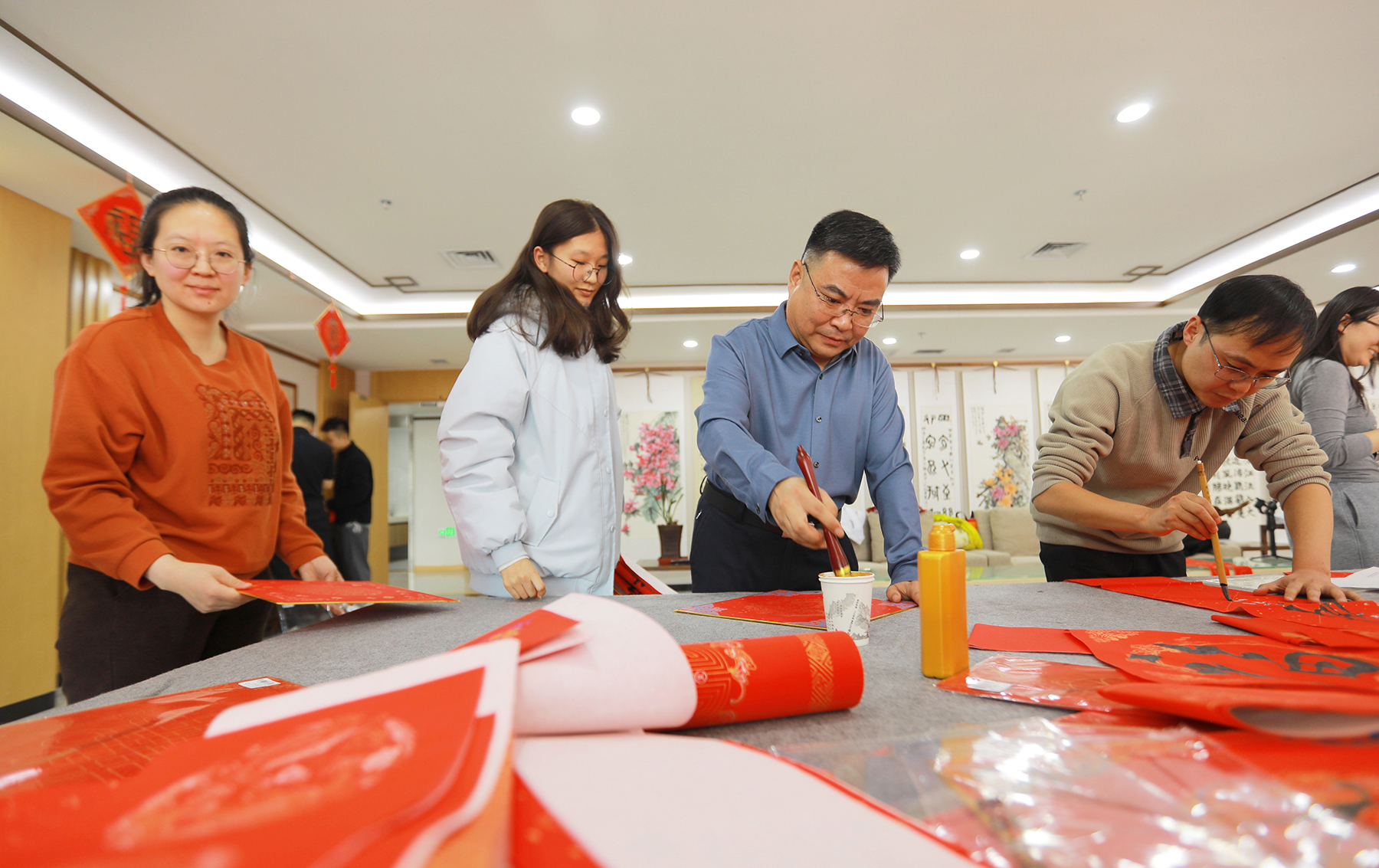 2月10日下午,在新春佳节来临之际,兰大一院工会联合书画协会开展“新春送福联”主题活动,以手写春联为职工送上节日问候。