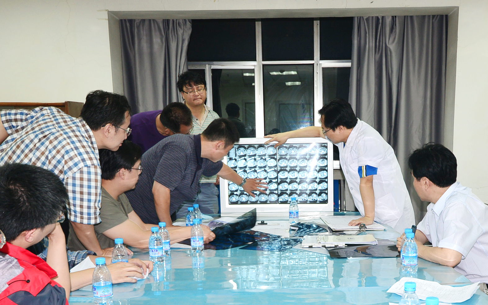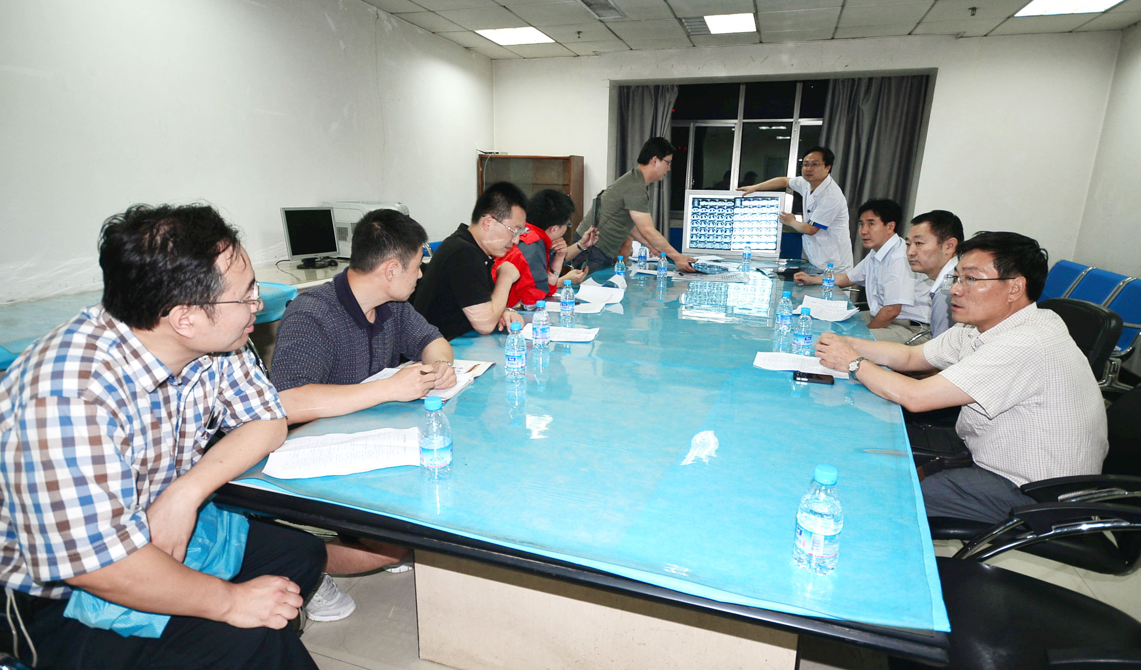 7月27日晚21:20,在卫生厅副厅长金中杰、医政处处长滕贵明陪同下,来自北京多家医院的七名专家赶到我院重症医学科,与我院专家一起,合力为收治在这里的急危重商讨救治方案,进一步指导治疗。