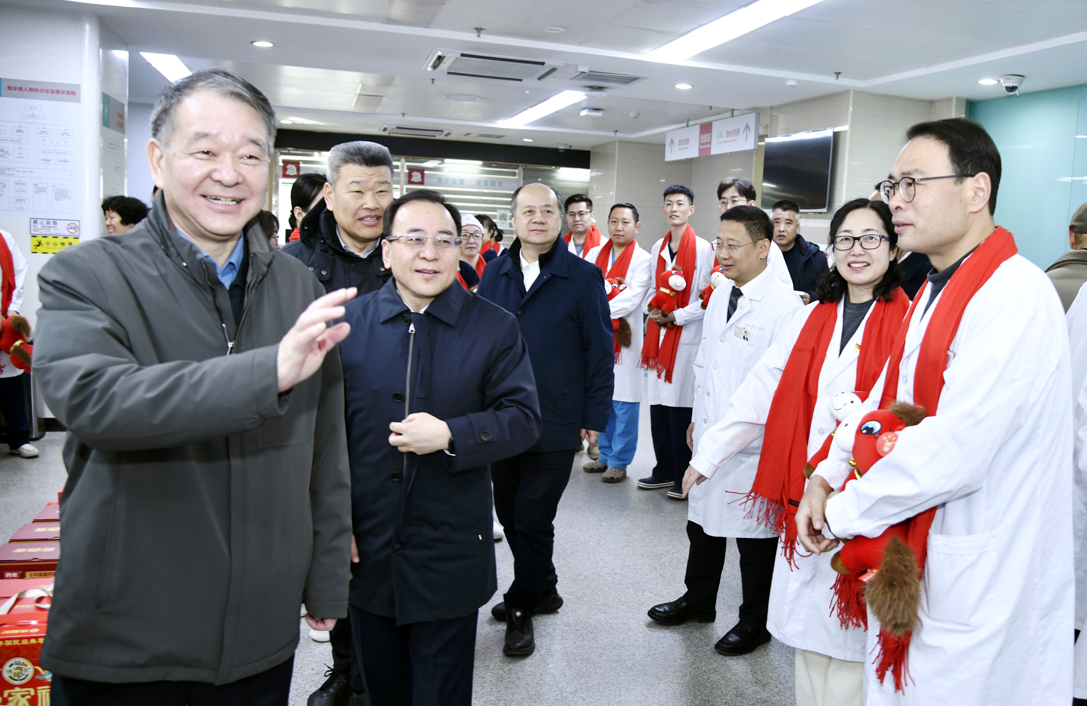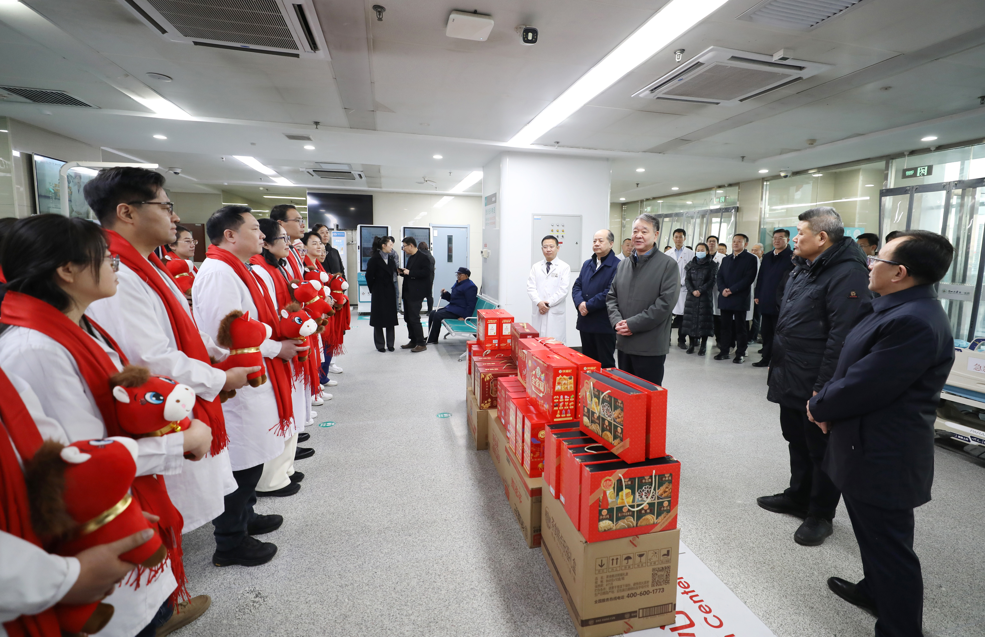 在急诊科、创伤外科,马小洁一行与坚守岗位的医护人员亲切交谈,详细了解工作和生活情况,感谢大家为医学事业发展、守护人民生命健康所作出的积极贡献。叮嘱大家在工作中要注意劳逸结合,持续提升医疗服务能力与水平,推动医院各项事业不断迈向高质量发展新台阶。在慰问过程中,副校长、医学部主任李汛对医务人员长期以来的辛勤付出表示衷心感谢,并祝福大家在新的一年里阖家幸福、马年大吉。