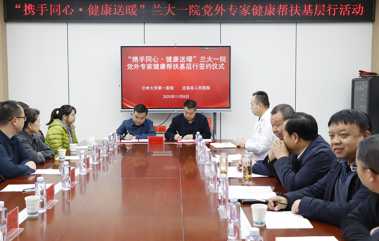 车世平代表兰大一院与庄浪县人民医院签订了《健康帮扶合作协议》,双方就进一步完善双向转诊机制,探索“党建引领+健康帮扶+专科建设”协作模式,依托信息化实现诊疗数据互联互通,提升患者就医效率,推进区域医疗协同等工作交流了意见。