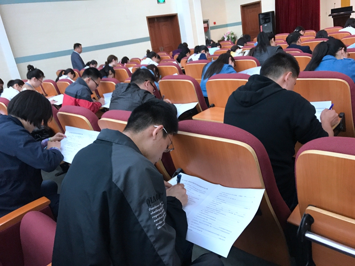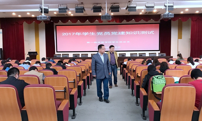 2017年5月5日下午,在营养楼四楼第一临床医学院学生党总支结合“两学一做”常态化制度化开展党建知识测试,院党委副书记、纪委书记胡万军参加此次活动,考试由学生党总支书记郭鹏军主持,各支部书记现场监考,全体学生党员近300人参加了考试。