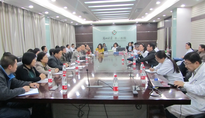 2014年11月5日,为加强对医学本科教学运行的监控和管理,深入了解教学情况,提高医学教学质量,兰州大学医学院教育教学部组织专家组,赴第一临床医学院进行中期教学工作检查,专家组由兰州大学医学院副院长、教育教学部部长孙毅带队,赵玉元教授担任组长。我院副院长杨永秀,院党委副书记、纪委书记张毓人,临床教务处处长兼学生党总支书记郭鹏军及各教研室主任和教学秘书、临床教务处工作人员陪同检查。
