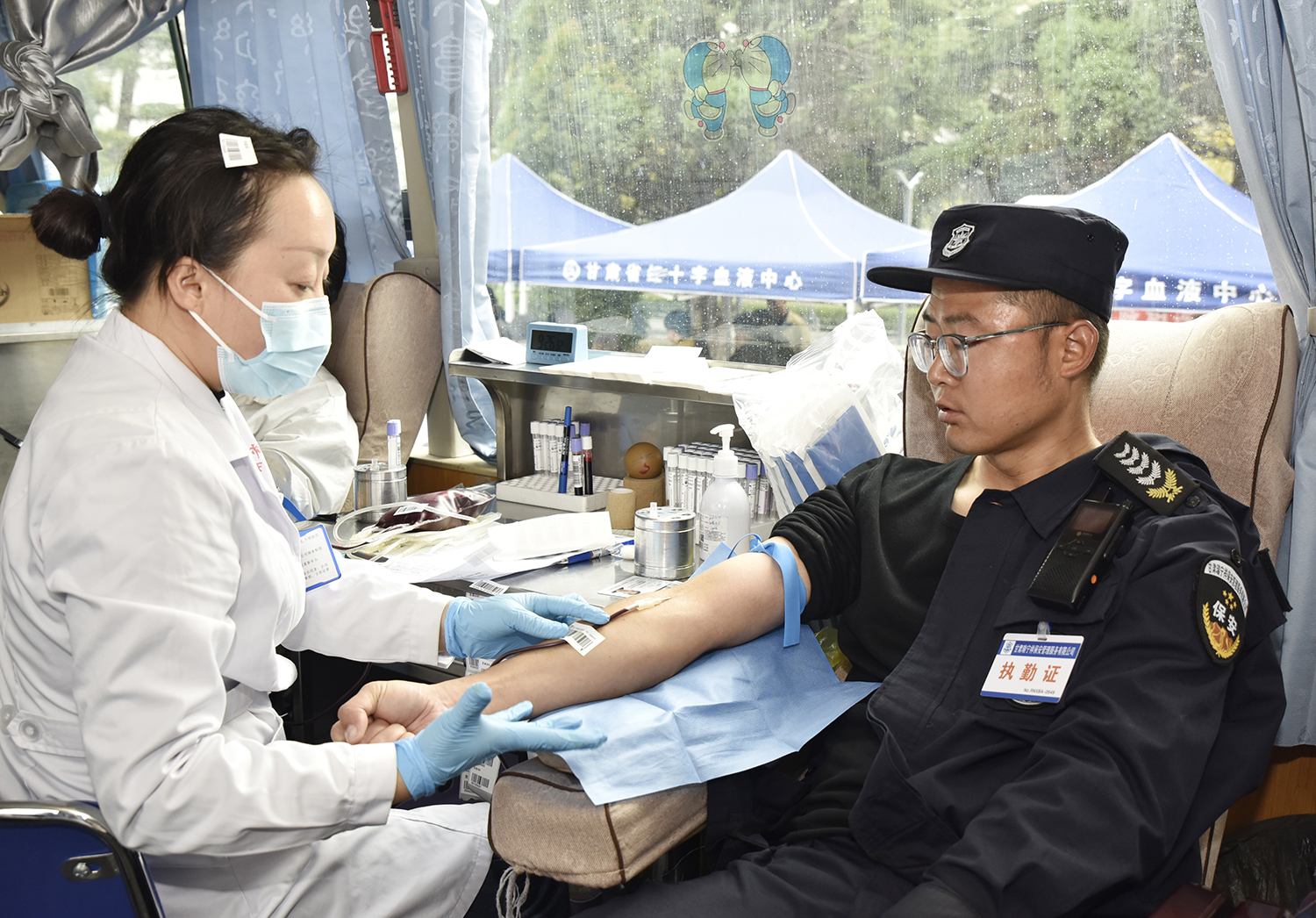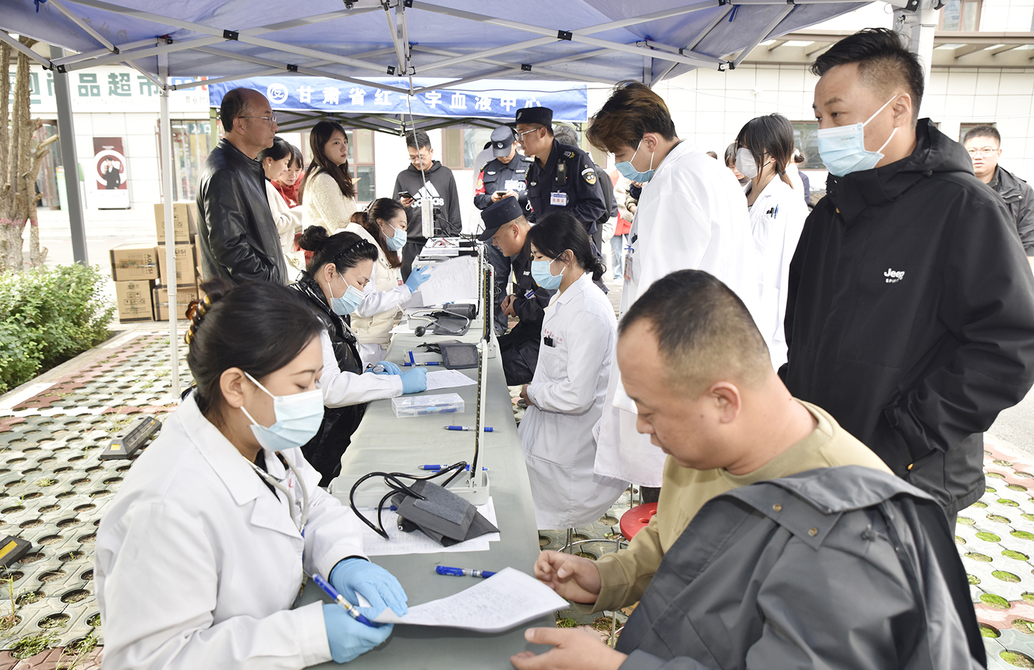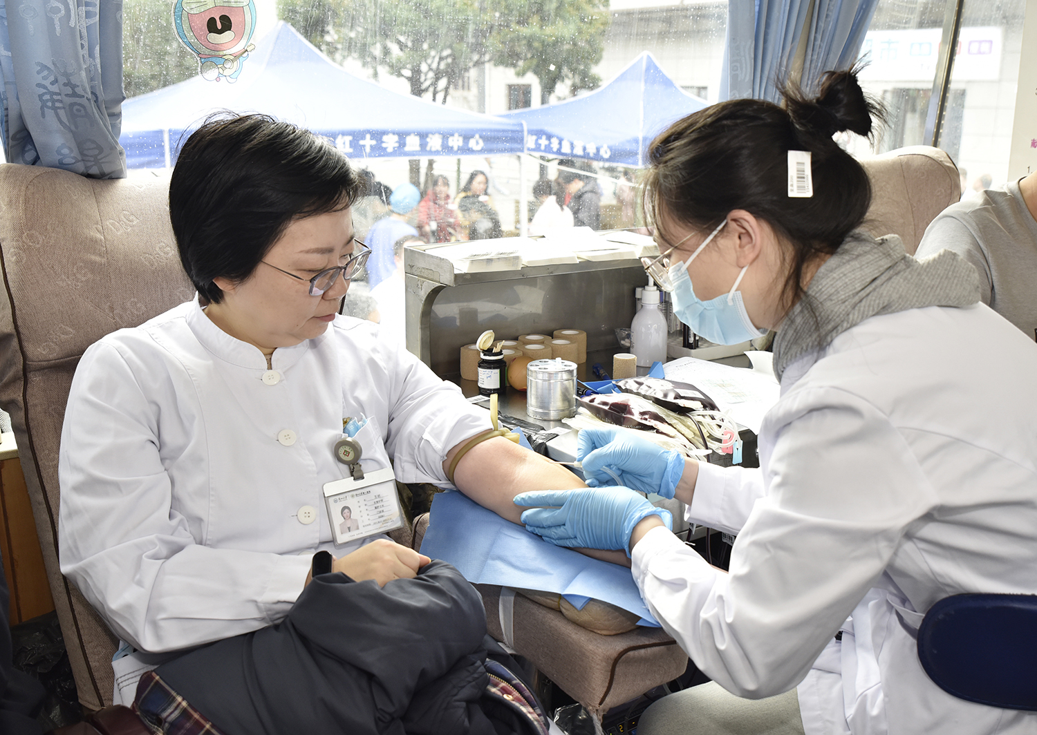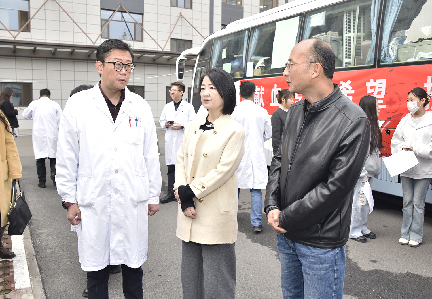 活动当天,医院英福楼前的献血点早早排起了长队,有刚下夜班的医生护士,有利用工作间隙赶来的行政人员,还有坚持每年献血的医务人员。医务处工作人员现场引导协调报名献血的职工,有序进行信息登记、血压测量、血液初筛等环节。符合条件的职工依次登上采血车献血,现场秩序井然。
