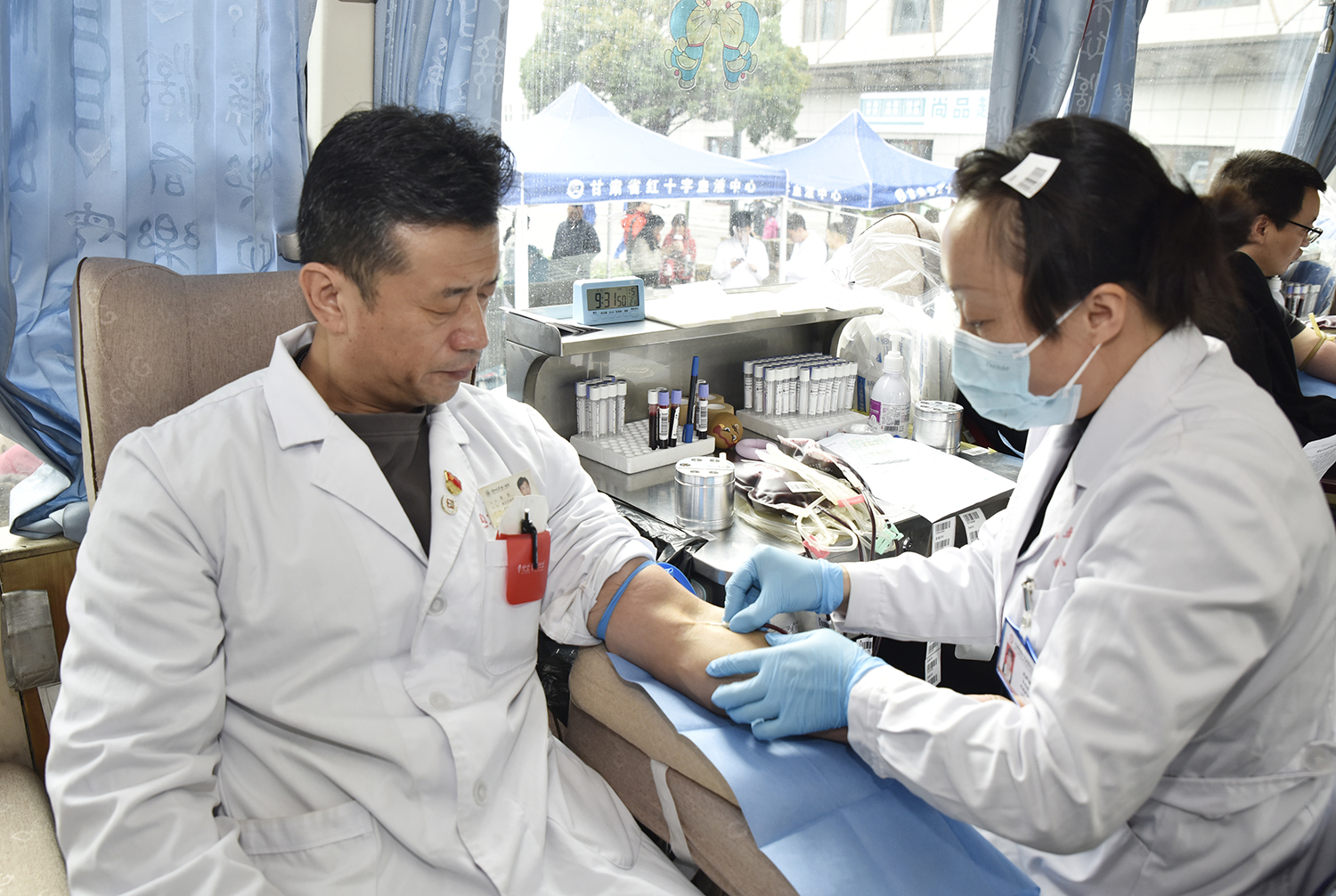 兰大一院副院长张磊现场慰问献血职工,感谢大家积极踊跃的参与到无偿献血这项崇高的事业中来。他表示,作为医务工作者,更能深刻理解血液对于救治生命的重要性。兰大一院多年来始终坚持组织并参与无偿献血活动,既是履行社会责任的具体体现,也是医院文化建设的重要组成部分。希望能够继续以行动传递温暖,用专业与热忱守护生命。