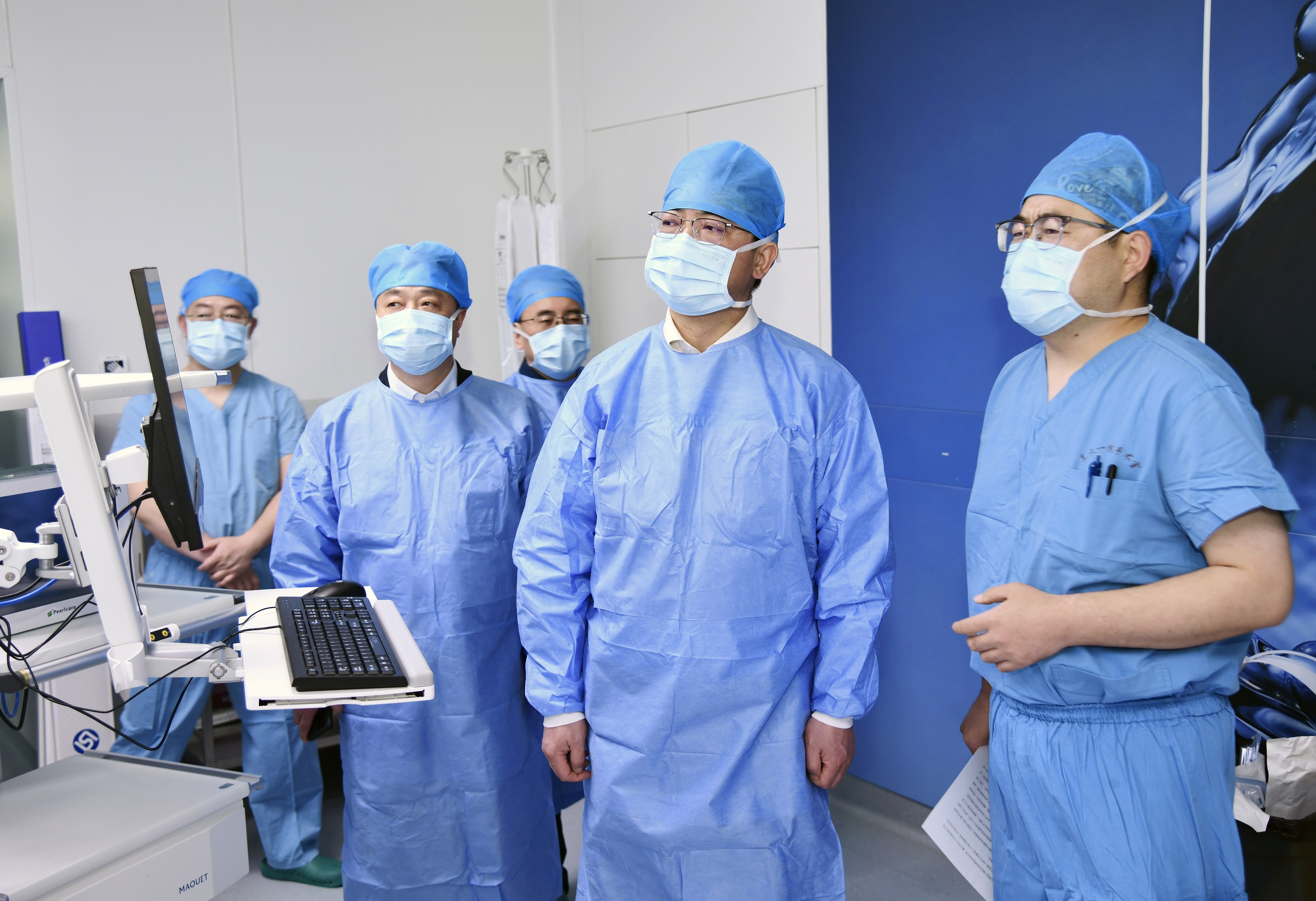 4月26日下午,贵州医科大学附属医院党委书记李海洋等一行3人来院参观交流。甘肃省卫健委副主任左石,兰州大学党委常委、第一医院党委书记王定峰,副院长姬瑞及相关部门负责人陪同参观。