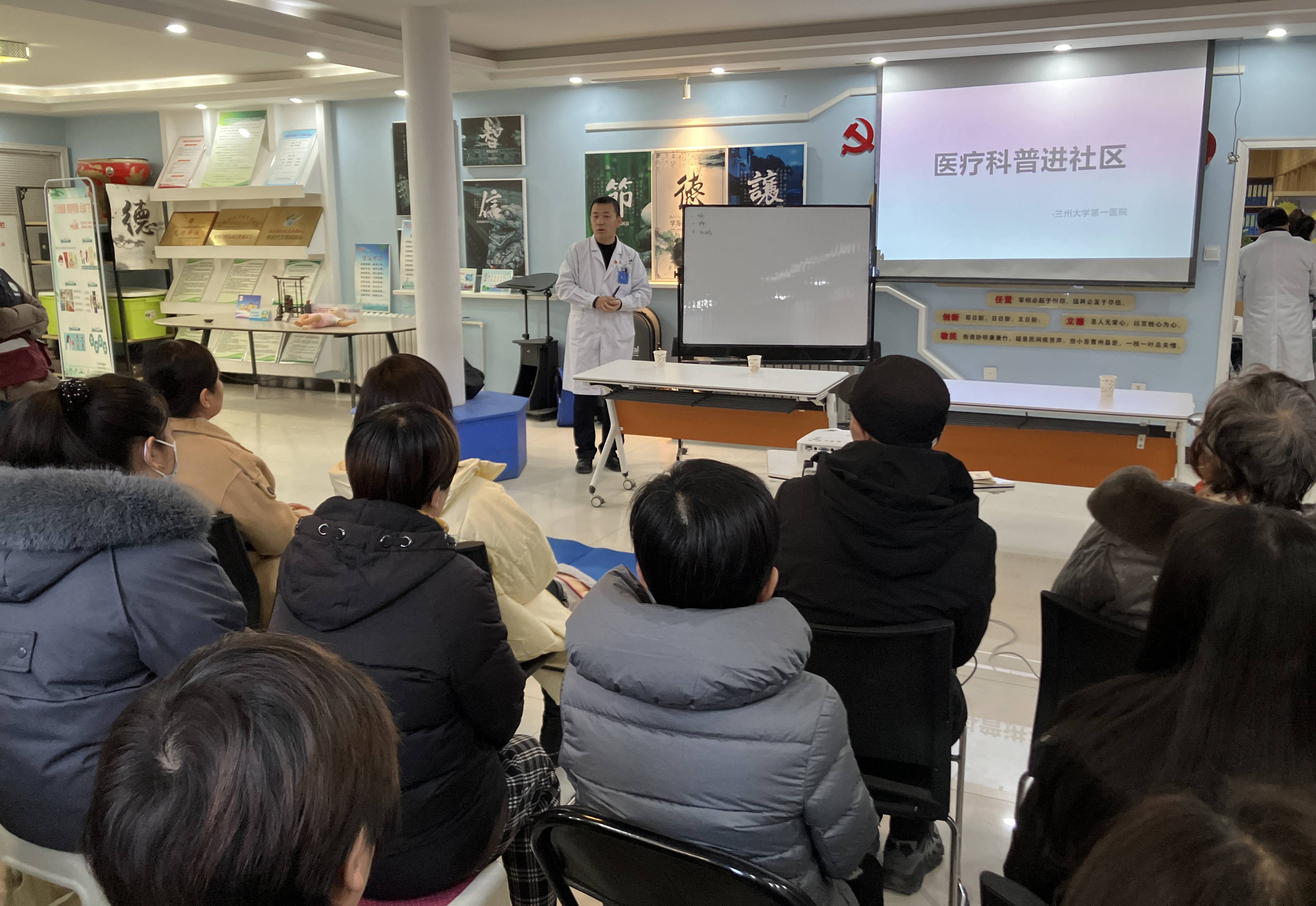 活动伊始,兰大一院团委书记、神经外科副主任杨刚围绕脑血管疾病的预防、诊治及护理等方面,向在场居民进行了医学常识科普宣讲。