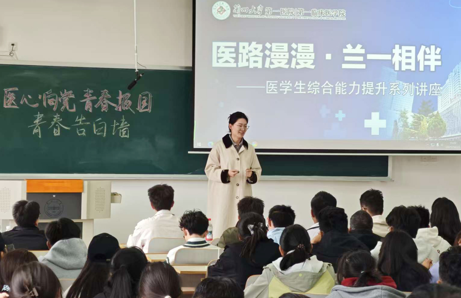 10月23日,兰州大学第一临床医学院在榆中校区天山堂举办“医心向党,青春报国”示范性主题团日暨“医路漫漫·兰一相伴”医学生综合素质能力提升系列讲座活动。活动聚焦医学生培养核心环节,邀请妇产科学教研室教师滕菲、研究生支教团秦宝龙同学进行专题分享。教务处教学管理人员及2025级新生参加活动。