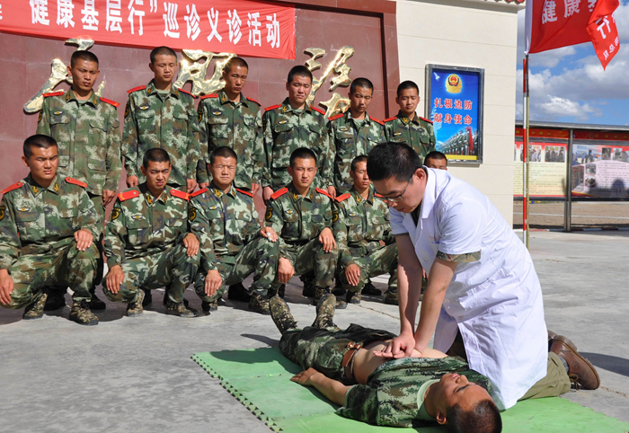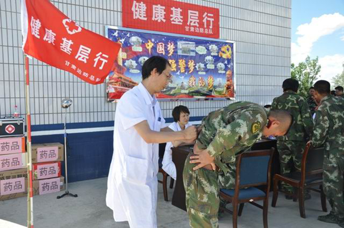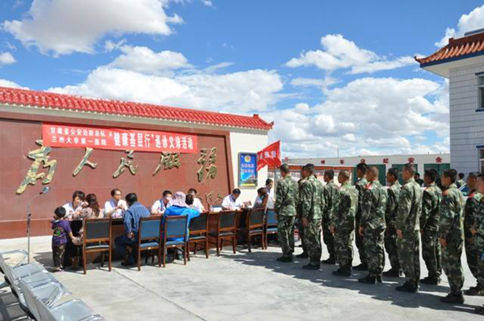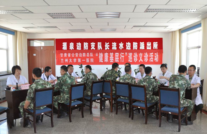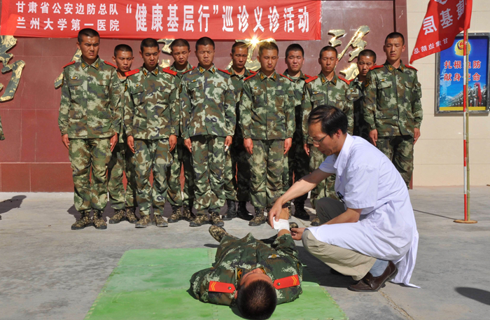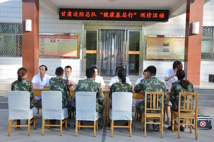 2014年7月11日到13日,应甘肃省公安边防总队邀请,我院派出医疗队一行四人,与边防总队医务人员组成医疗专家组,进行“健康基层行”巡诊义诊,奔赴河西边疆为基层战士体检,指导战士学习急救技能。
