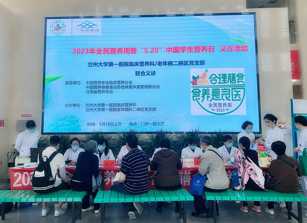 为贯彻落实健康中国、健康甘肃建设,积极响应中国营养学会“健康中国 营养先行”的号召,5月16日开始兰州大学第一医院临床营养科积极开展2023全民营养周系列活动。