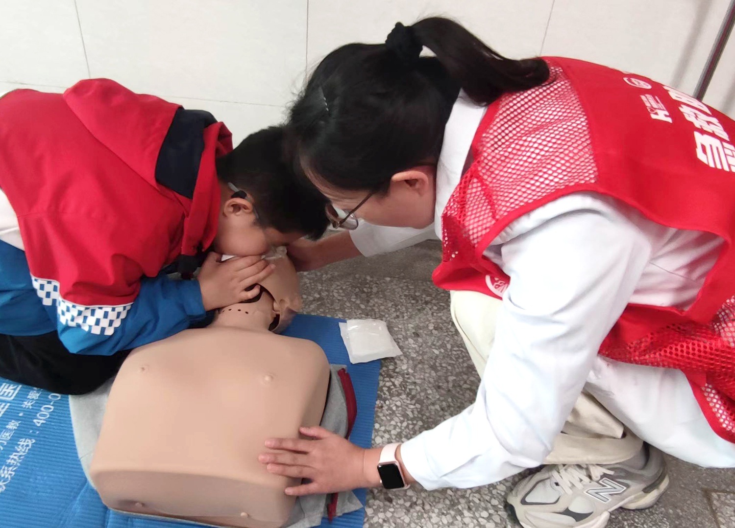 活动中,妇产科片区护理团队组织了急救知识科普讲座,为校内300余名师生讲解了低血糖识别及处理的相关知识,并通过理论与实践演练相结合的形式,为同学们进行了单人徒手心肺复苏术、自动体外除颤(AED)的使用以及海姆立克急救法等基本急救技能的讲解与实操演练。现场师生积极参与,护理团队成员手把手进行教学,指导师生们掌握正确的急救技能。