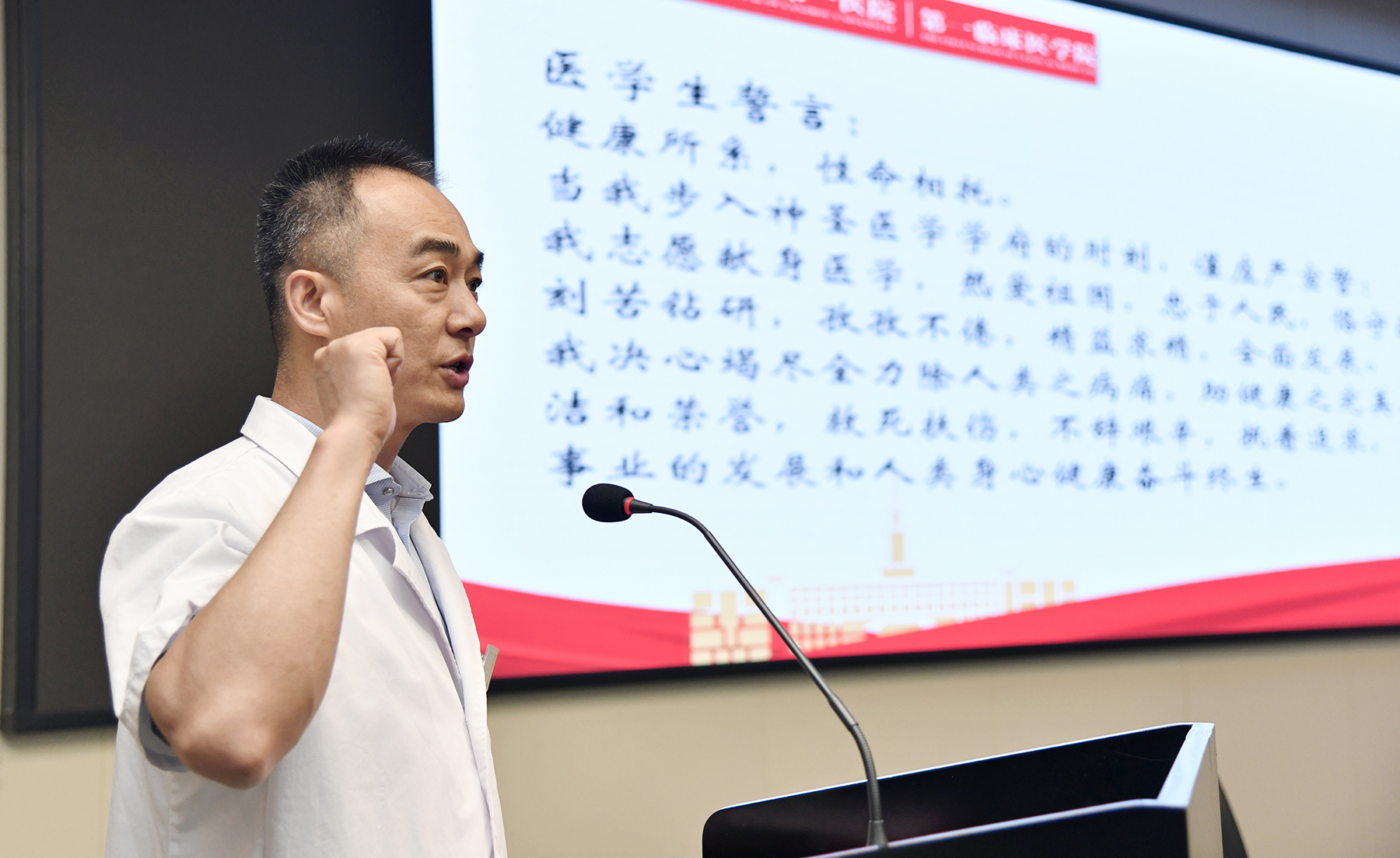 最后,研究生处处长滕永军带领全体师生宣读医学誓言。