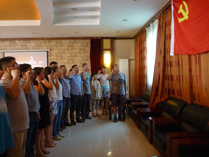 十三支部经过举手表决,同意积极向党组织靠拢,前期经过认真考察的4名同志为预备党员,2名同志为入党积极分子,并要求他们以共产党员的标准严格要求自己,认真学习,努力工作,提高自身素质,接受组织考验。随后,在支部宣传委员魏红斌同志的带领下,新入党的同志进行了入党宣誓,老党员们也一起重温了入党誓词。
