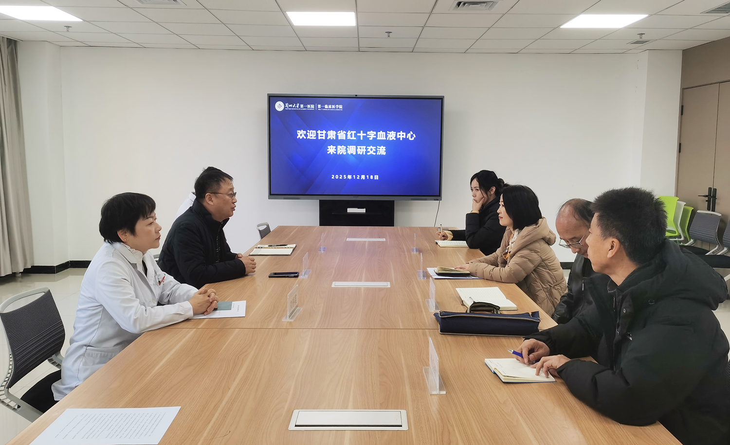 12月18日上午,甘肃省红十字血液中心主任秦晓虹一行来兰大一院开展临床用血情况专项调研。兰大一院副院长姬瑞、医务处副处长赵金生、输血科主任刘春霞、重症监护室主任李斌、EICU主任刘丽平及感染科、CCU相关临床用血科室人员参加调研。
