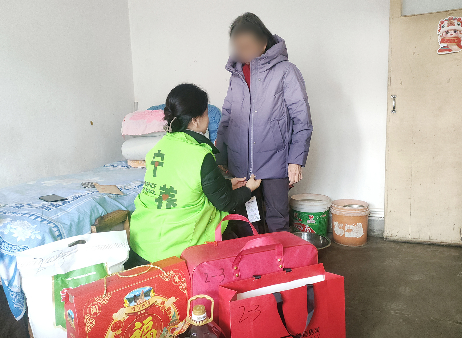本次慰问对象为宁养服务中筛选出的因病致贫、因病返贫困难家庭,其中特困家庭10户、贫困家庭10户。宁养院为每户家庭送去面粉、食用油、鸡蛋、棉被、羽绒服等生活必需品,并按困难程度发放慰问金:特困家庭每户3000元,贫困家庭每户2000元。