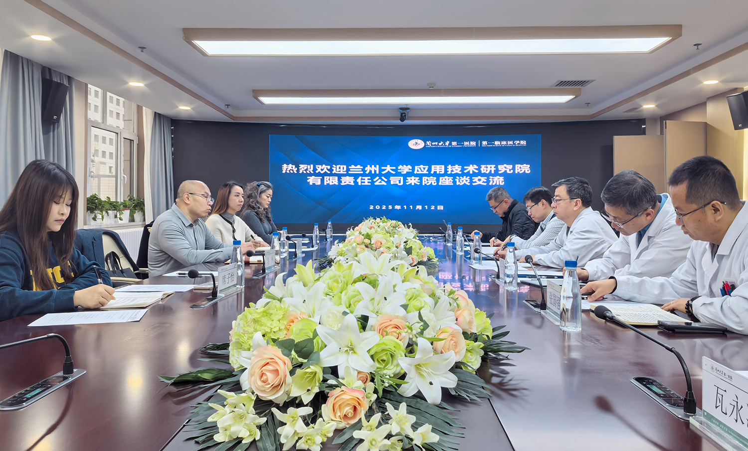 11月12日上午,兰州大学应用技术研究院有限责任公司总经理张宇奇一行来院交流,双方围绕科研成果转化与深化合作展开专题座谈。兰大一院副院长侯小明,科技处副处长王玉平、梁晓磊,以及临床科室相关负责人、业务骨干参加交流。会议由王玉平主持。