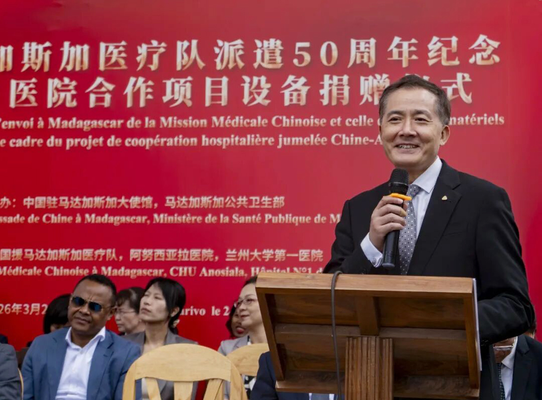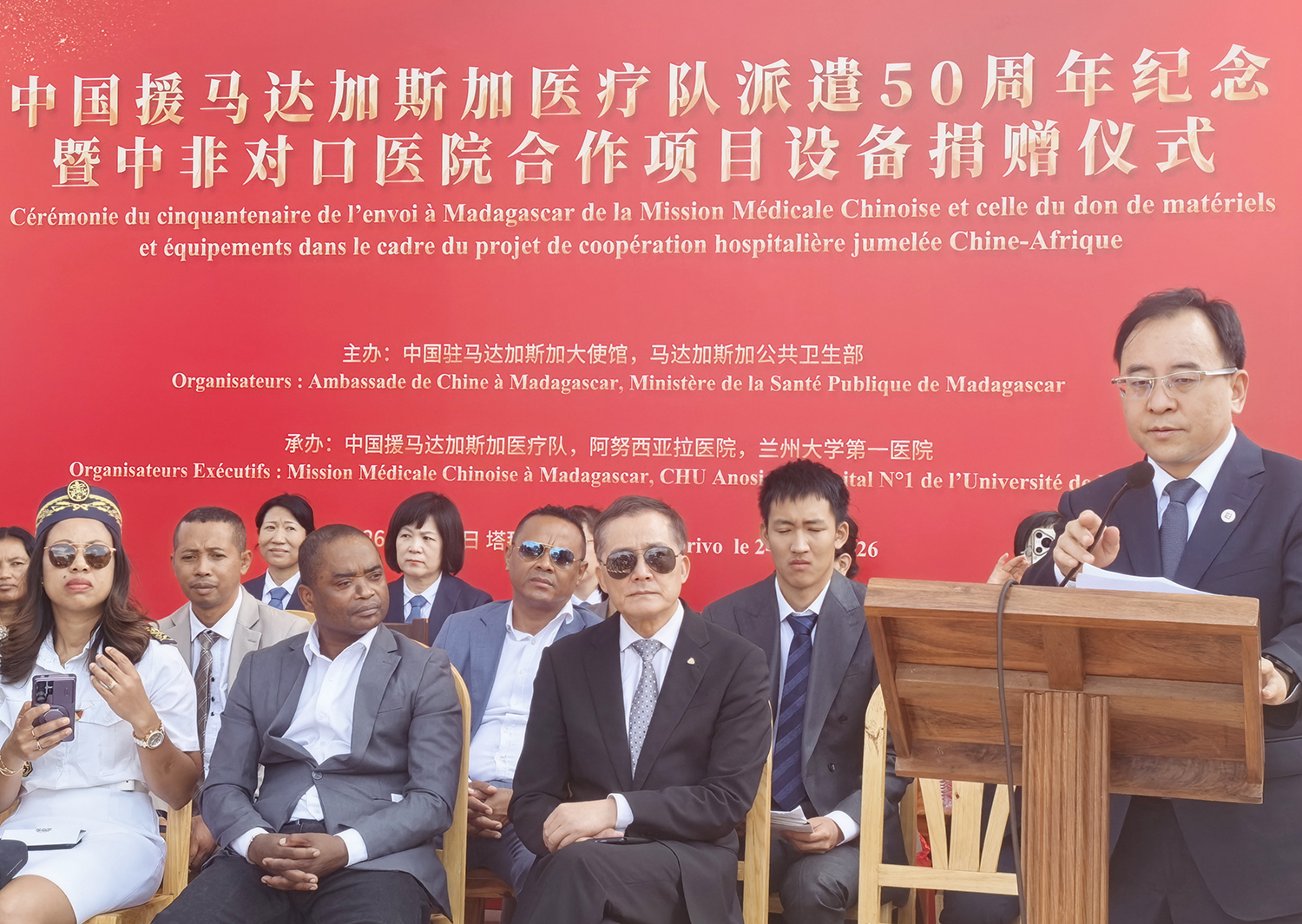 马达加斯加公共卫生部秘书长兰德里亚南比尼纳、阿努西亚拉医院院长拉乔纳里武尼等先后致辞,对中国政府及援马医疗队长期以来给予的无私援助和医疗支持表示衷心感谢,高度评价中马卫生合作成果,感谢中国五十年来持续派遣医疗队、捐赠医疗物资、开展技术帮扶,为马达加斯加医疗卫生事业发展做出的贡献。
